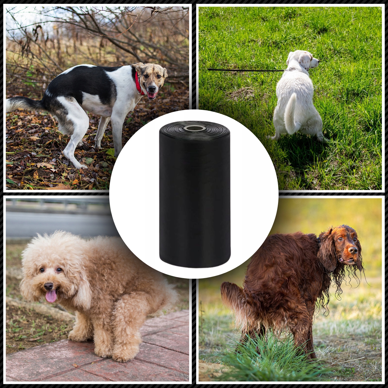 Черный цвет мешка полностью закрывает его содержимое, поэтому вы не сможете увидеть, что находится внутри, прежде чем поместить его в контейнер для сбора собачьих экскрементов.