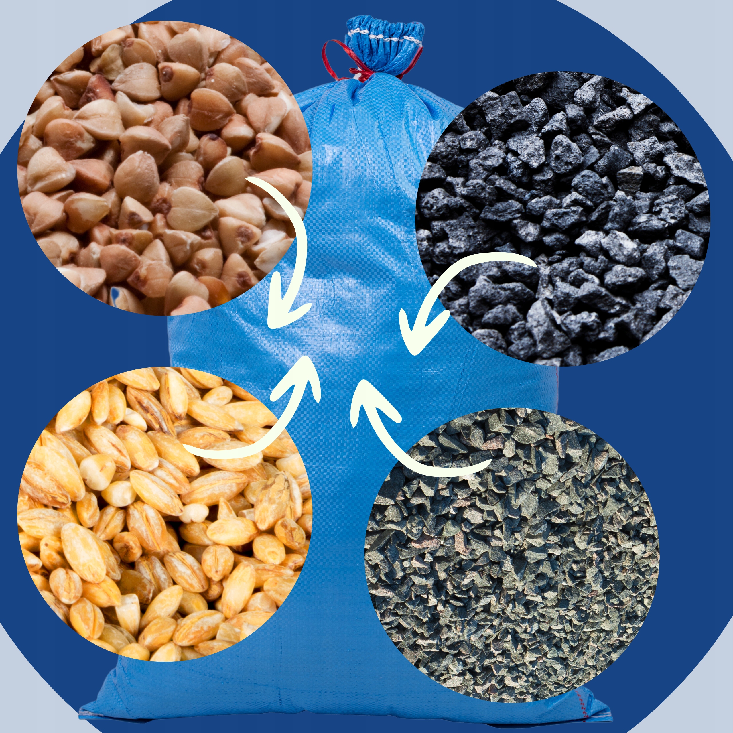 ➡️Такие товары, как: эко- горох, уголь, мусор, пеллеты, листья, щебень, уголь, гравий, камни