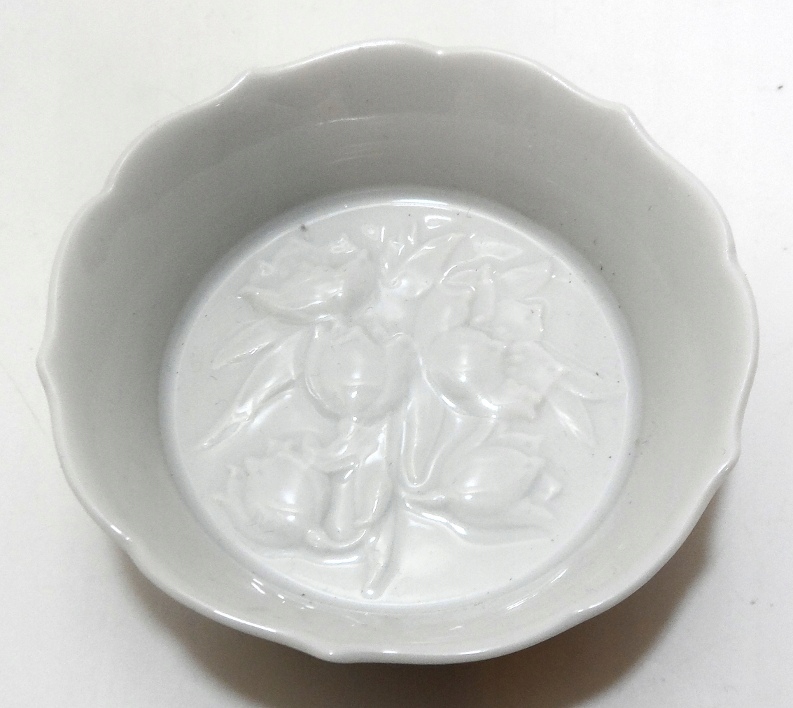 Предмет аукциона – красивый старинный сосуд из белого фарфора, украшенный рельефом на основании.