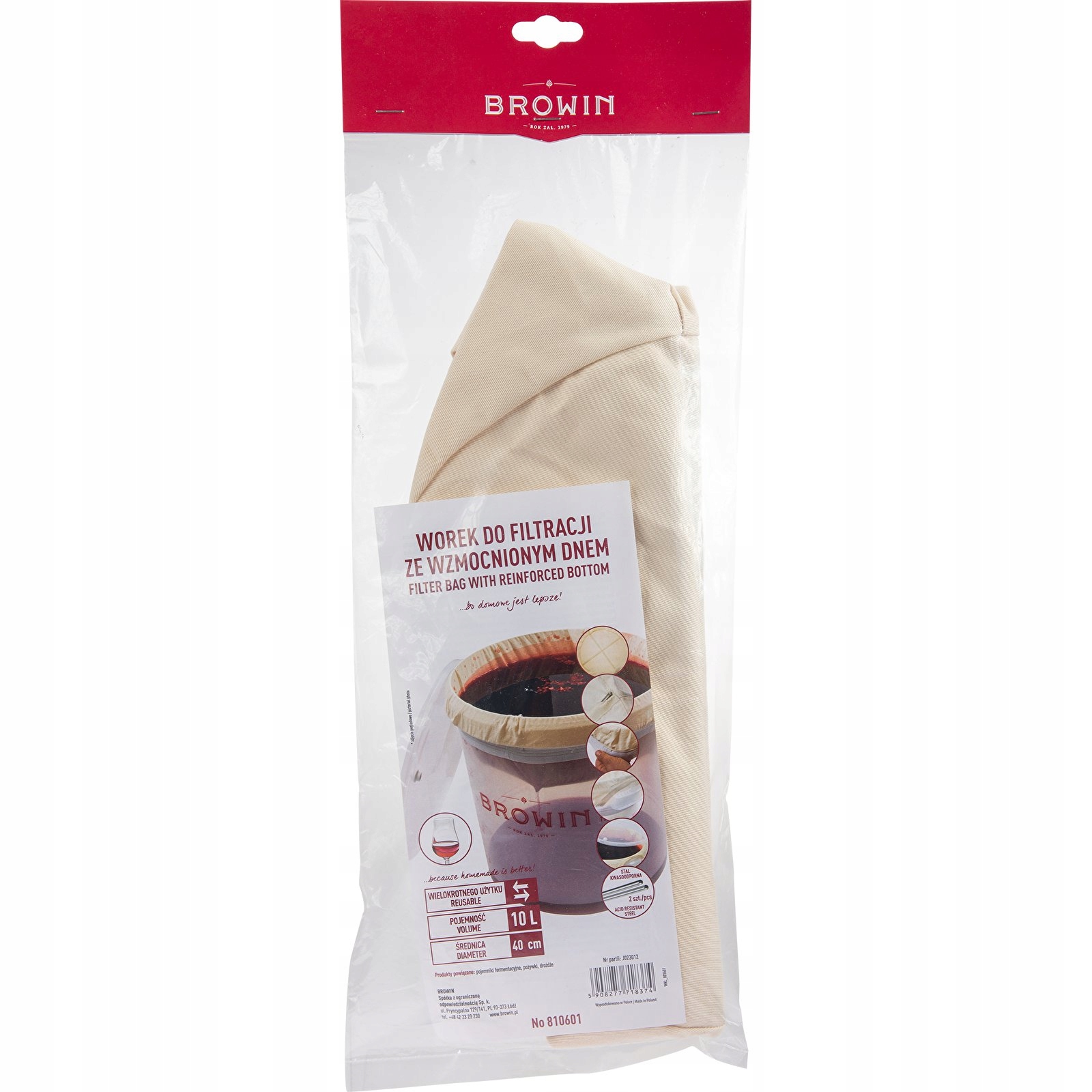 Мешок многоразовый, натуральный, хлопковый с усиленным стержнями дном, для фильтрации настоек - 10 л - прочная, кислотостойкая сталь. Удобный в использовании и обеспечивающий эффективную фильтрацию непревзойденный фильтр-мешок с дном, усиленным кислотостойкими стальными стержнями. Характеризуется большой вместимостью (10 л) и компактной структурой материала. В отличие от типичных мешков, усиленная конструкция дна и эргономичная форма позволяют осуществлять фильтрацию практически всей поверхностью (что соответствует диаметру контейнера, на котором он установлен). Это гарантирует очень высокую эффективность и сокращение времени фильтрации.