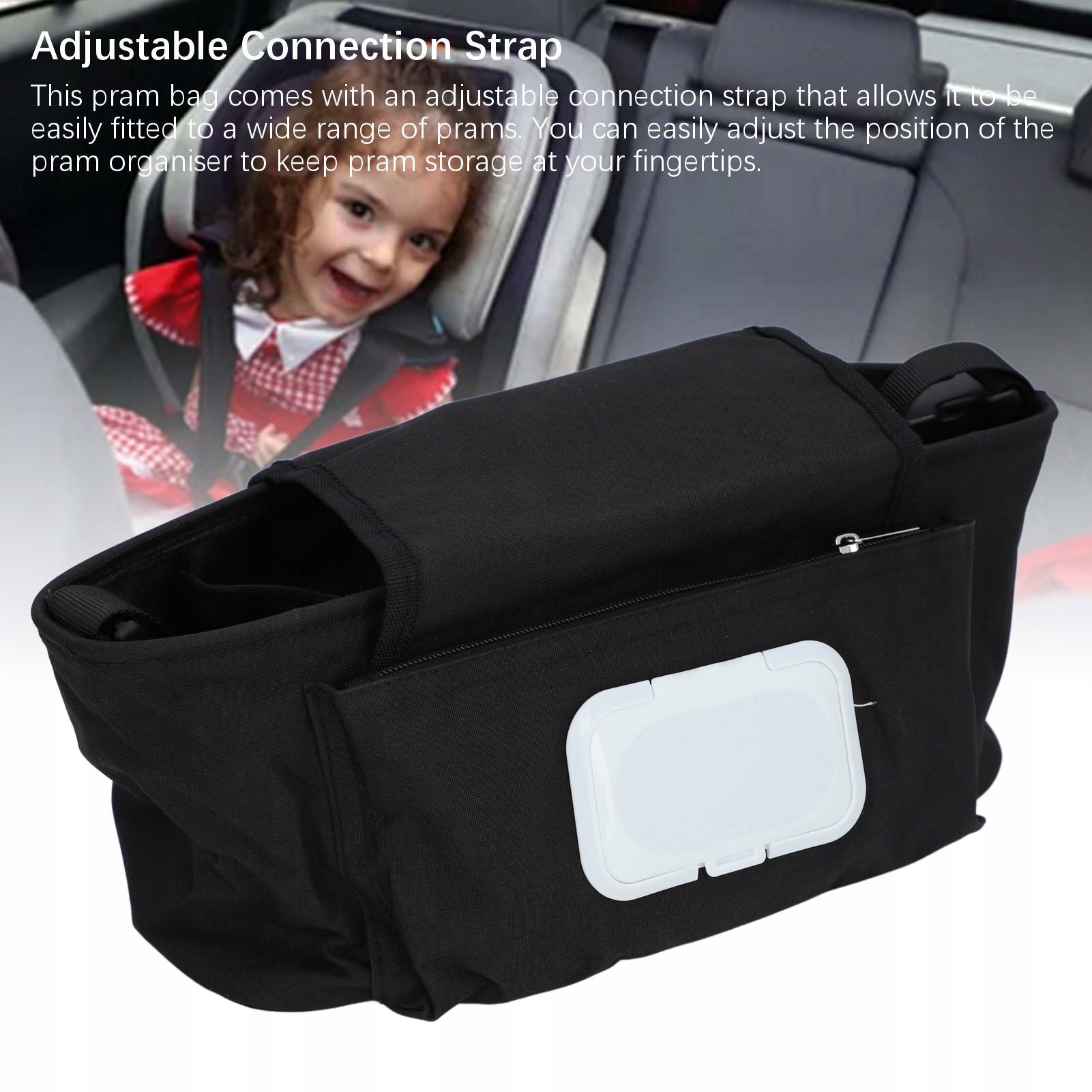 2. Регулируемый ремешок: этот пакет для троллейбуса оснащен регулируемым ремешком, который позволяет ATWE соответствовать широкому диапазону колясок. Вы можете адаптировать организатор троллейбуса, так что место для хранения коляски всегда было под рукой.