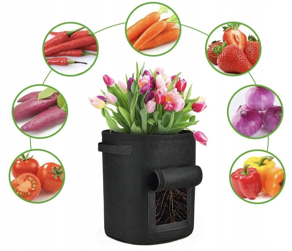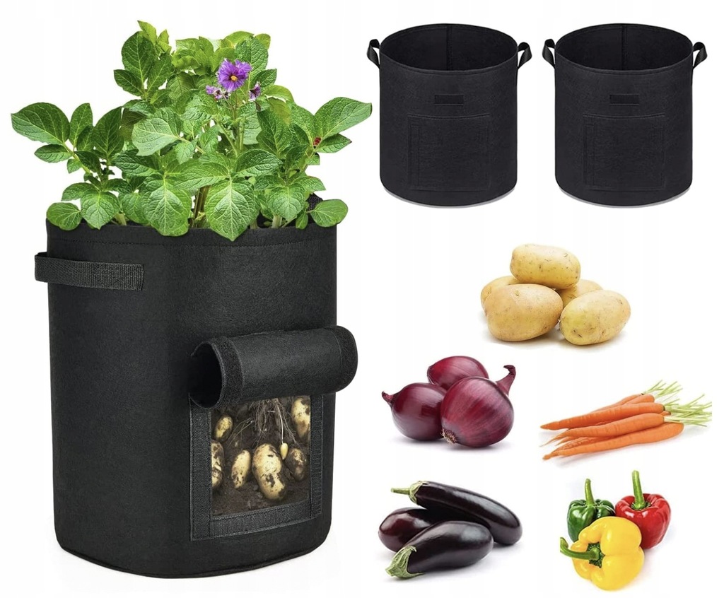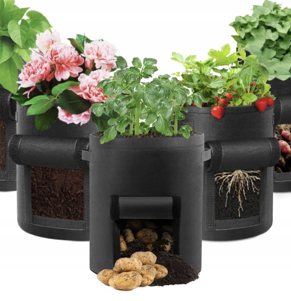 Сумки очень удобны в использовании. Благодаря им вы можете легко посадить картофель, овощи или другие растения в выбранном месте. В мешках есть отверстия на дне, которые облегчают дренаж лишней воды, которая способствует правильному росту растений.