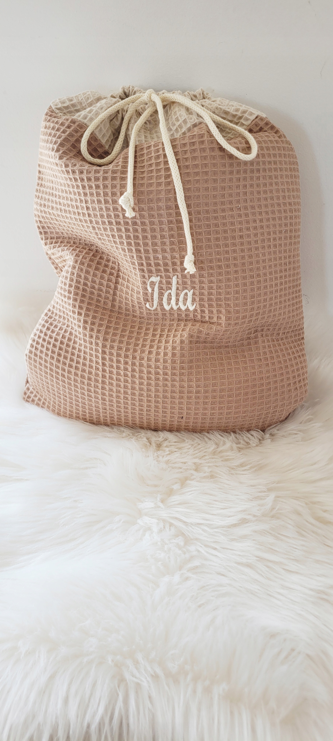 мешок для постельного белья, рюкзак, именная вышивка 48 х 38 / цвет на выбор