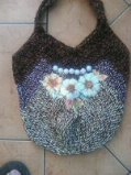 Симпатичная сумка, изготовленная в крючке в 2 цветных коричневых и кремовых нитях и легких без сливочной длины сумки -38 см. серый -36 см. С Craws -56 см. Имеет красивую наклейку с цветочной доставкой немедленно одну без предела произведений