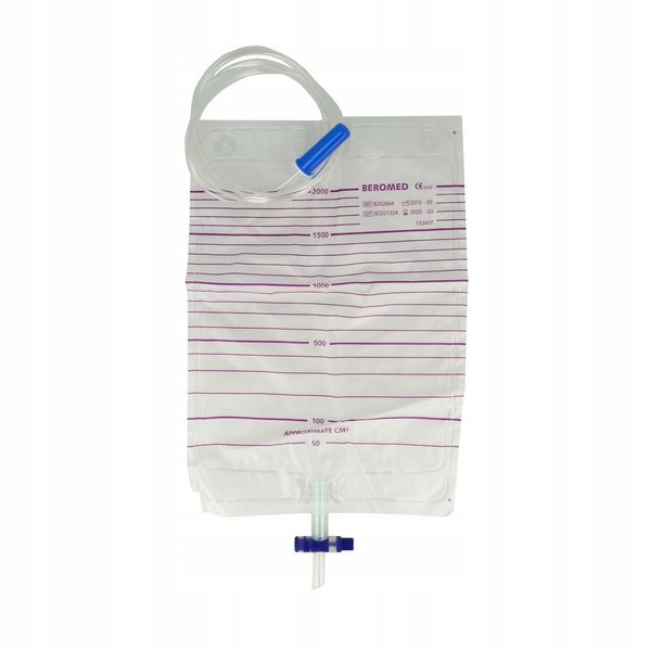 Мешок для сбора мочи объемом 2000 мл предназначен для ежедневного экстракорпорального сбора мочи и других жидкостей организма. Стерильный одноразовый пакет изготовлен из медицинского ПВХ, без содержания латекса. Изделие имеет кран быстрого слива и соединительный слив с универсальным ступенчатым соединителем, закрепленным заглушкой. Дренаж изготовлен из материала, который предотвращает его изгиб и перекручивание, обеспечивая свободный и эффективный отток мочи. Кроме того, изделие имеет усиленные отверстия для подвешивания, подходящие для стандартных вешалок. Мешок для сбора мочи Беромед оснащен системой, предотвращающей возврат мочи в катетер, поэтому он очень гигиеничен. Благодаря усиленной структуре обеспечивает защиту от потери стерильности.