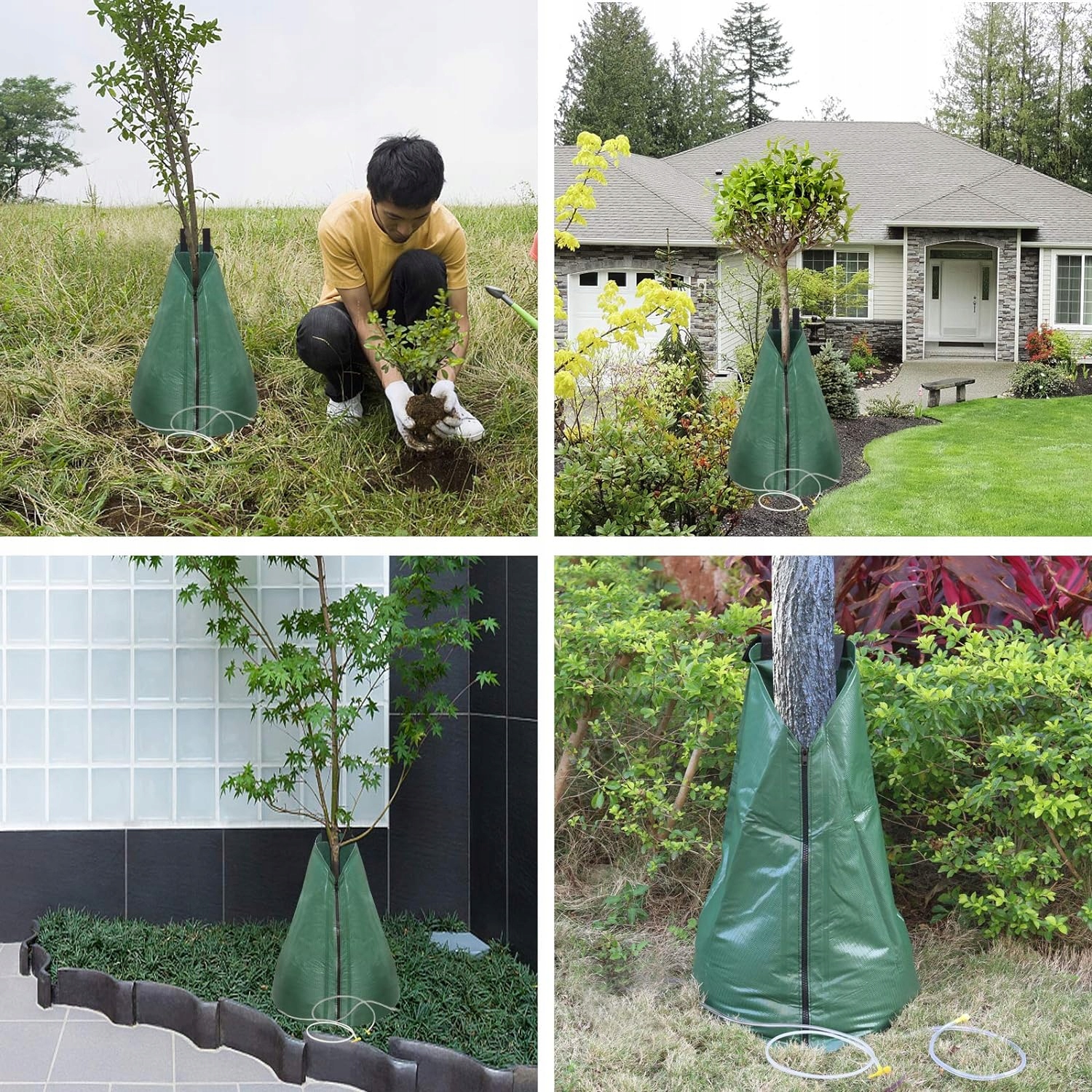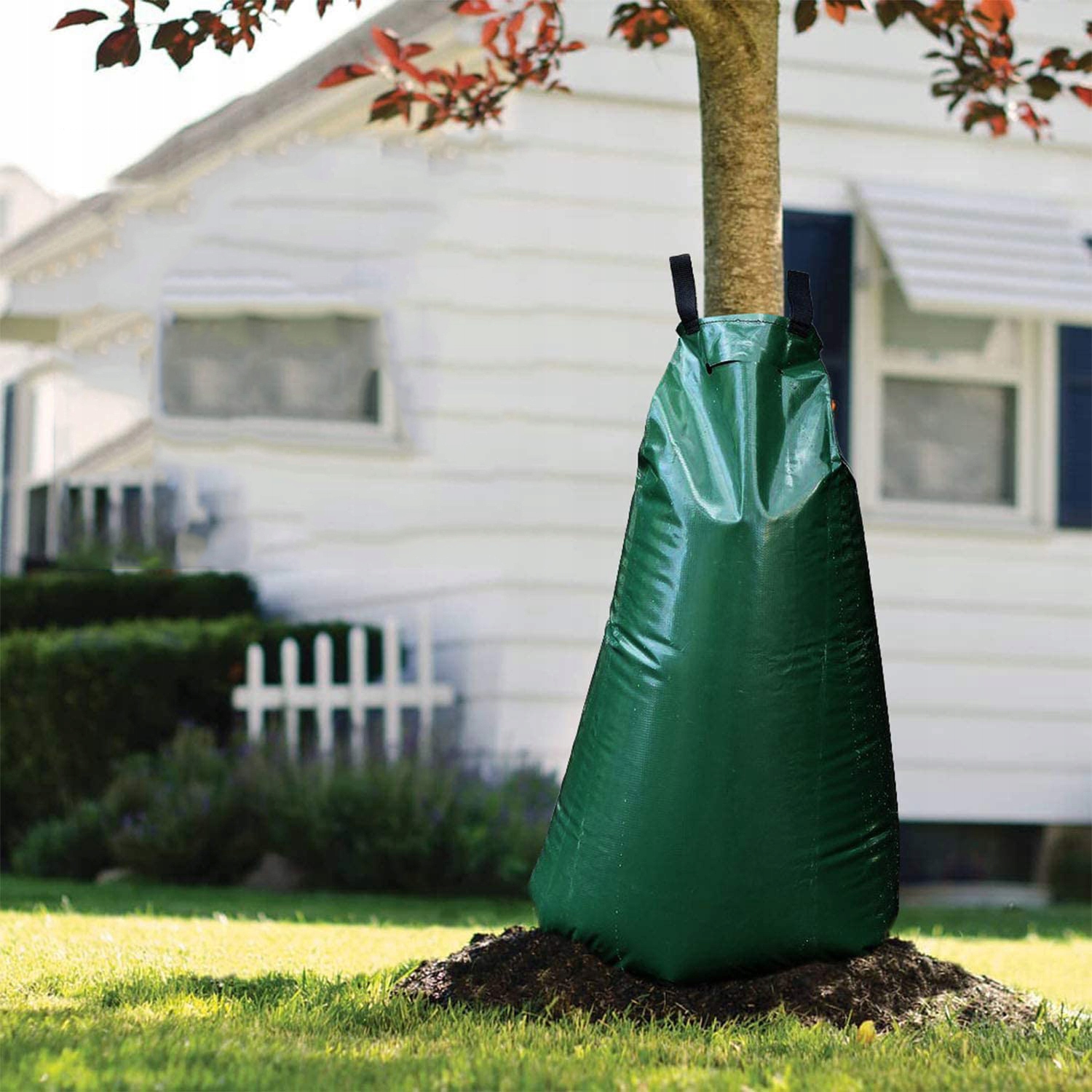 Мешок для полива деревьев позволяет непрерывно поливать деревья без утечек, что позволяет сэкономить много времени и труда. Если вы хотите обернуть их вокруг большого дерева, вы даже можете растянуть несколько пакетов и использовать их вместе.