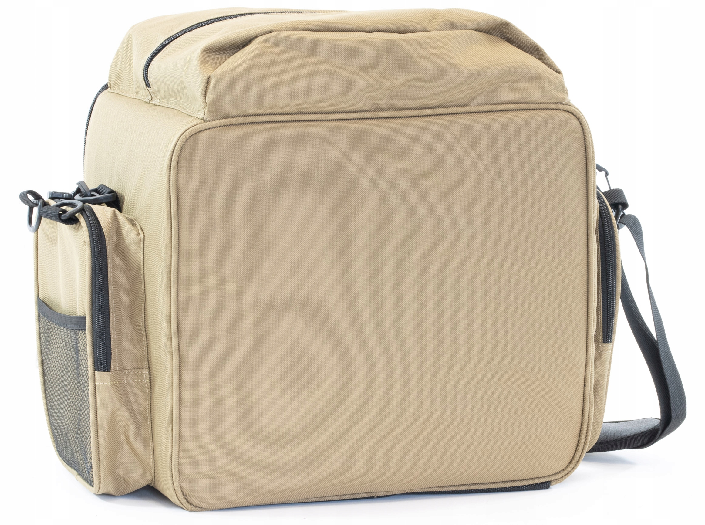 Удобная рыболовная сумка из водонепроницаемого неопрена. Имеет основное отделение объемом 20 литров, застегивающееся на молнию. Крышка имеет ребра жесткости по краям, как и боковые стороны сумки, а дно полностью жесткое. В крышке основного отделения имеется внутренний карман на молнии. В передней части сумки имеется карман, застегивающийся на молнию, с укрепленными краями крышки. По бокам два кармана на молнии с жесткими краями и крышками. Сумка имеет прочный регулируемый плечевой ремень и две лямки меньшего размера, которые позволяют носить сумку в руках.