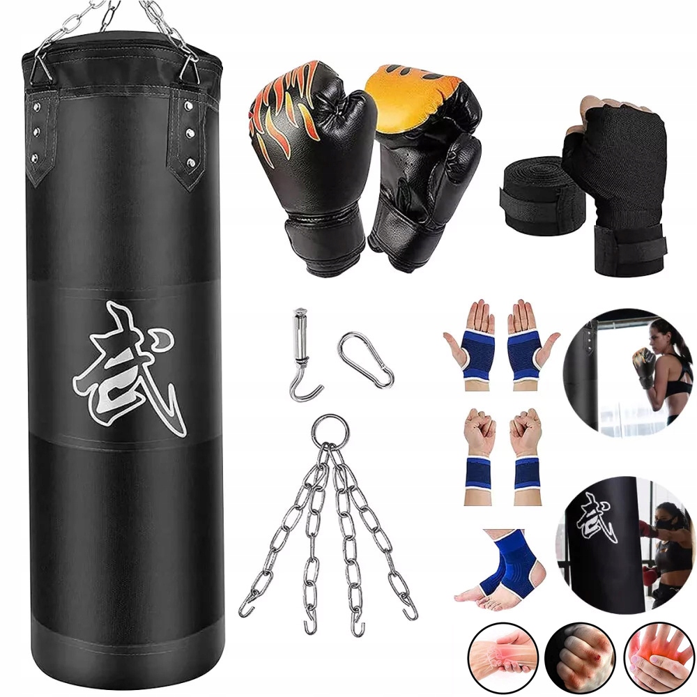 Для лучшей защиты при боксе и ударах ногами в комплект входят боксерские перчатки, бинты для рук, вешалка для сумки, 4-слойная стальная цепь, карабин, защита запястья, защита руки и защита костяшек пальцев. Кроме того, амортизирующая набивка из пеноматериала выдерживает самые сильные удары дома или в тренажерном зале и предотвращает травмы во время бокса и ударов ногами.