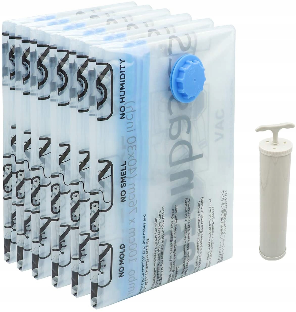 - Набор из 6 больших пластиковых вакуумных пакетов: вакуумные пакеты. 100 x 76 см (Д x Ш).