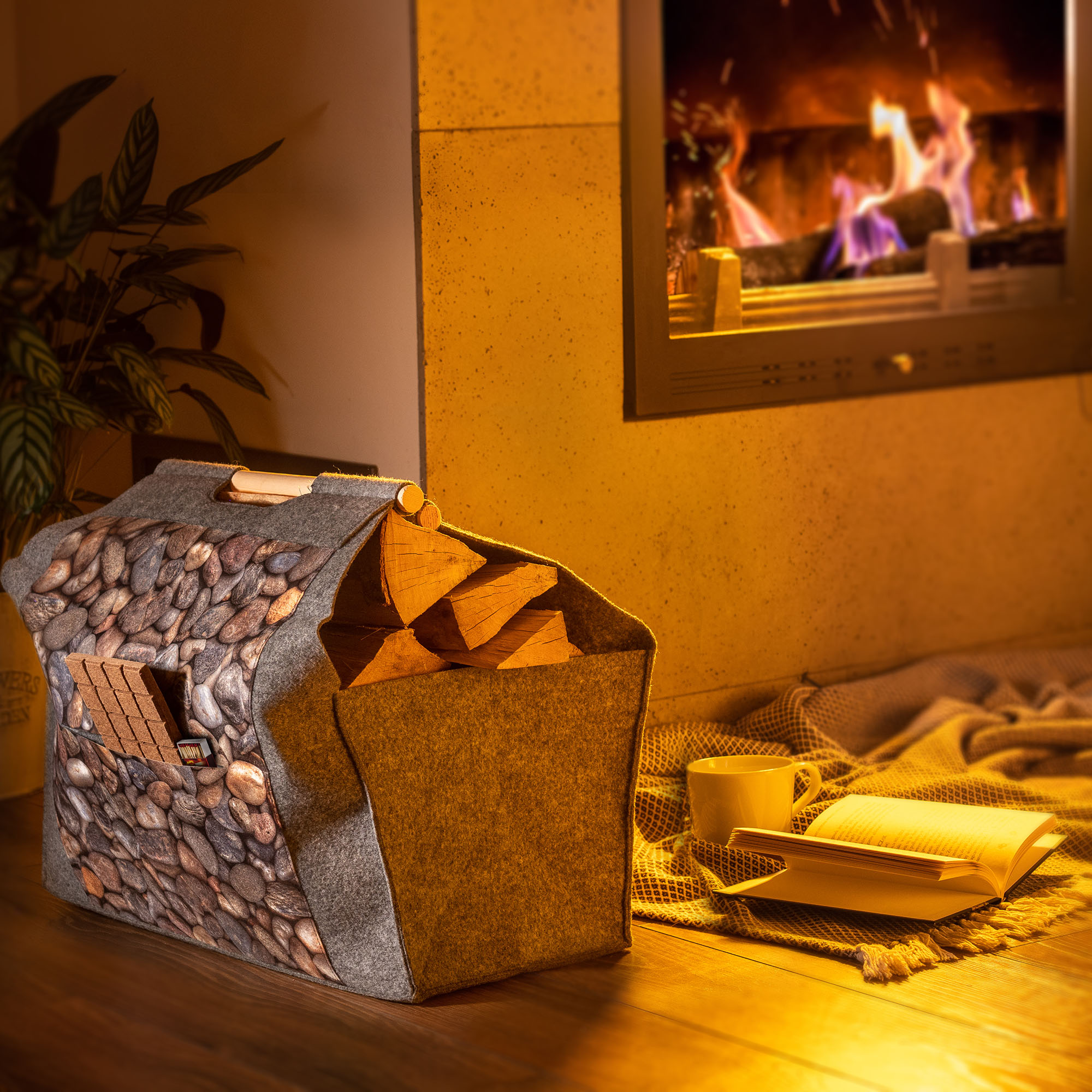 - Эстетическая - интересный дизайн и высококачественные принты делают объект великолепно выглядеть в гостиной камином. Вы будете хранить дерево по -настоящему стильно!