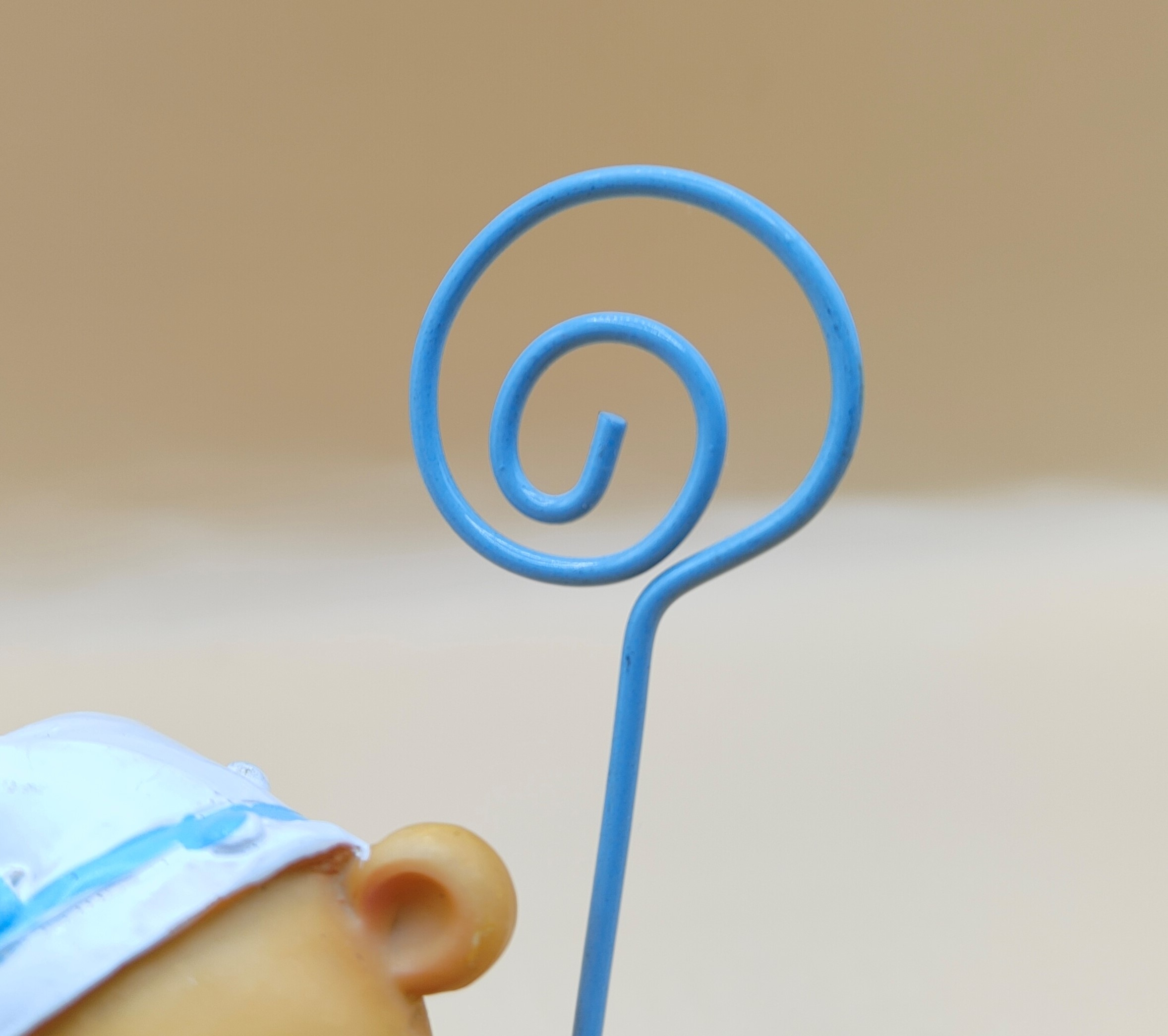 из смолы/пластика. Металлический держатель. Высота рисунка, измеренная с помощью ручки 9 см, вес 75 г. Живой вид такой же красиво, как на фотографиях. Используемый предмет - это прекрасное украшение для детской комнаты.