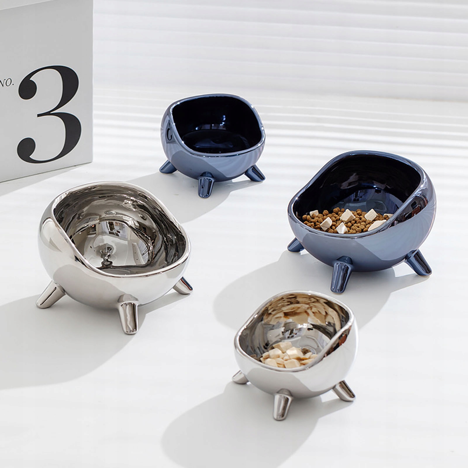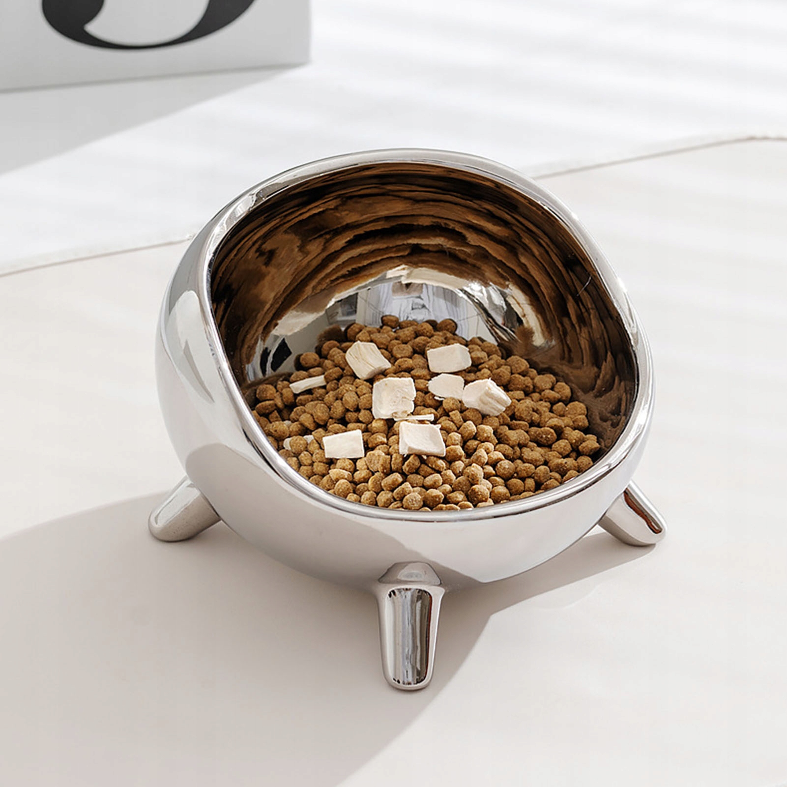 Миска для кошек Подходящая высота Зеркало Безопасность Керамическая устойчивая Миска большой емкости для кошек Собаки Домашние животные Серебристый Маленький (300 мл)