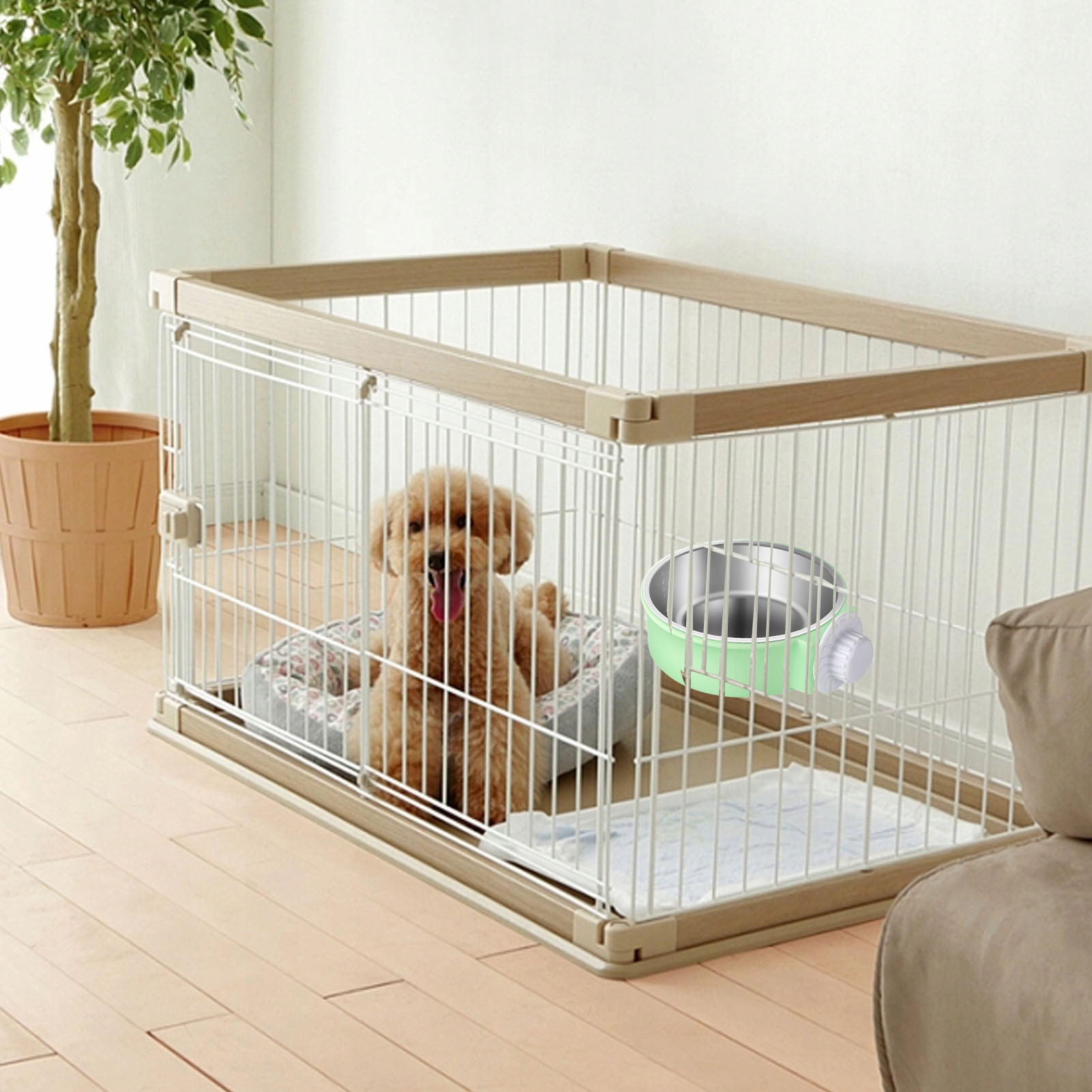 4. Отдельный дизайн: клетка для домашних животных, подвесные миски для еды. Отдельный дизайн, легко разбирать и чистить, легко чистить, многоразовый, обеспечивает гигиену мисок для домашних животных.