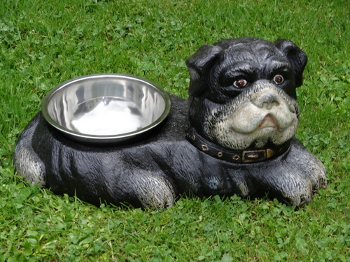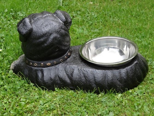 Скульптура собаки изготовлена из чугуна, а миска (блюдо) - из кессона.