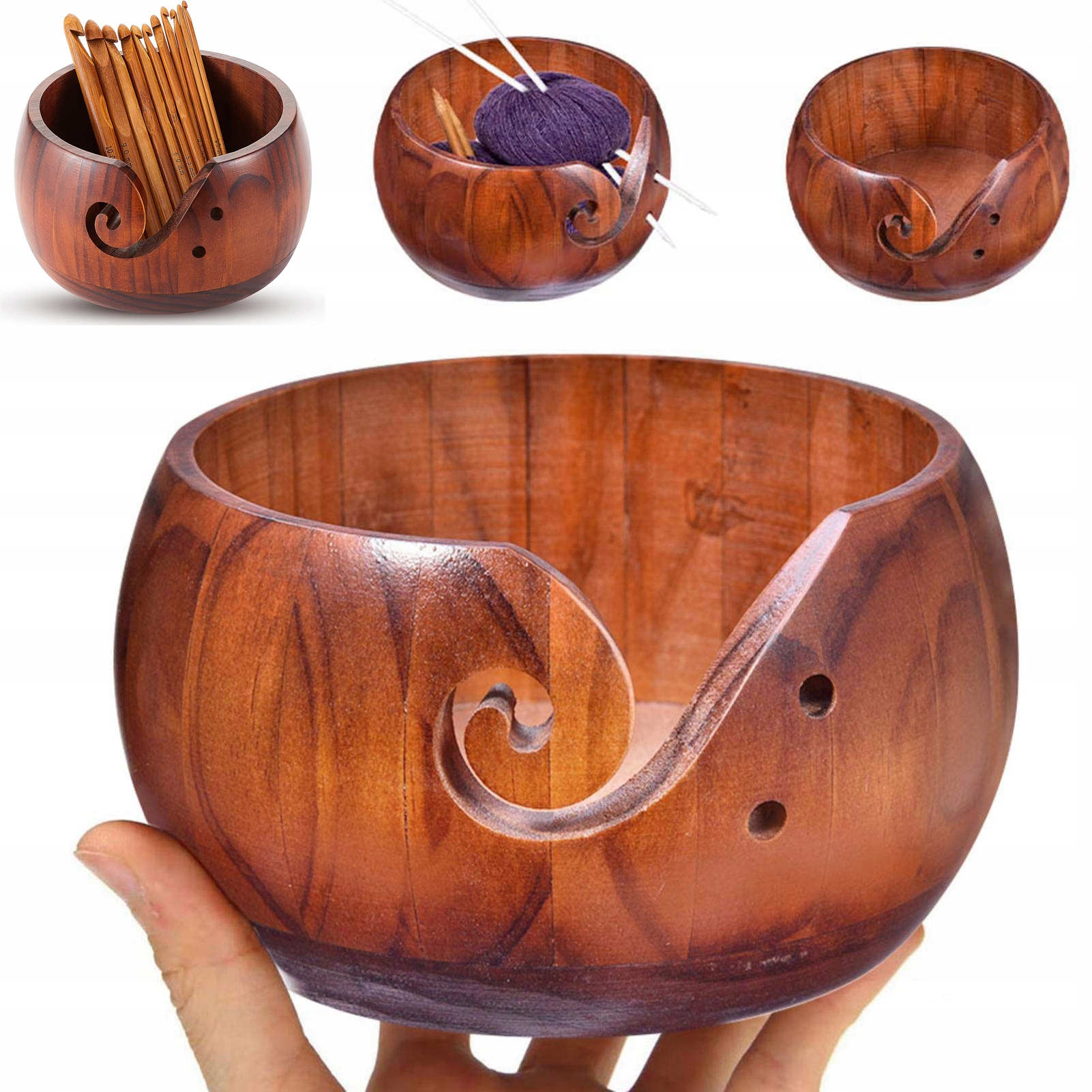 🧶 【Визуальный стиль】: Завернутый край, по краю чаши есть 2 небольших отверстия, что удобно для заправка ниток и эффективно предотвращает спутывание ниток во время плетения; Эту деревянную миску из пряжи изысканно и практично можно поставить на журнальный столик или письменный стол; Вы также можете использовать его как декоративную вазу, конфетницу или подставку для растений.