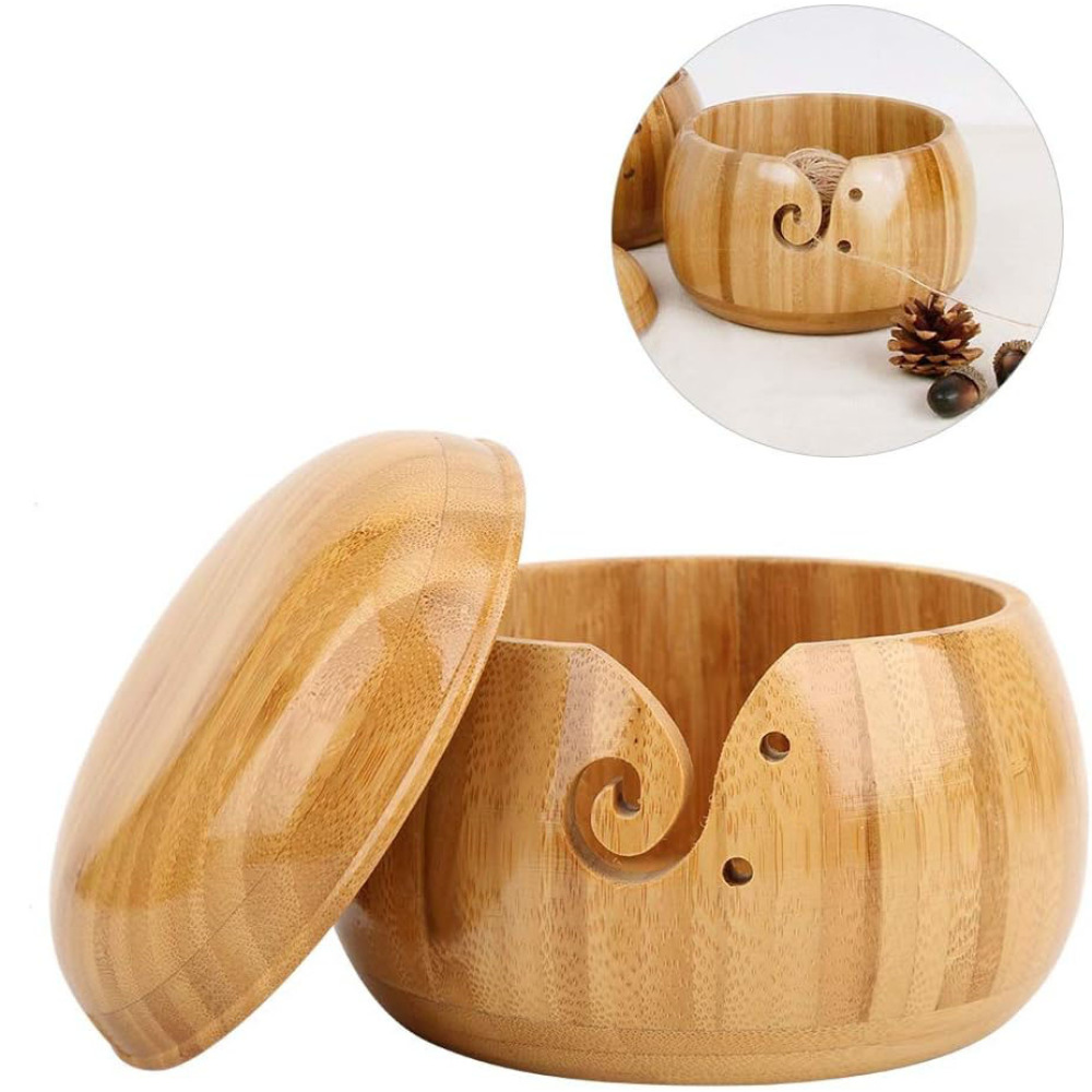 MISKA DREWNIANA Z WŁÓCZKI BAMBUSOWEJ NA PRZĘDZĘ UCHWYT NA DRUTY 15.5CM