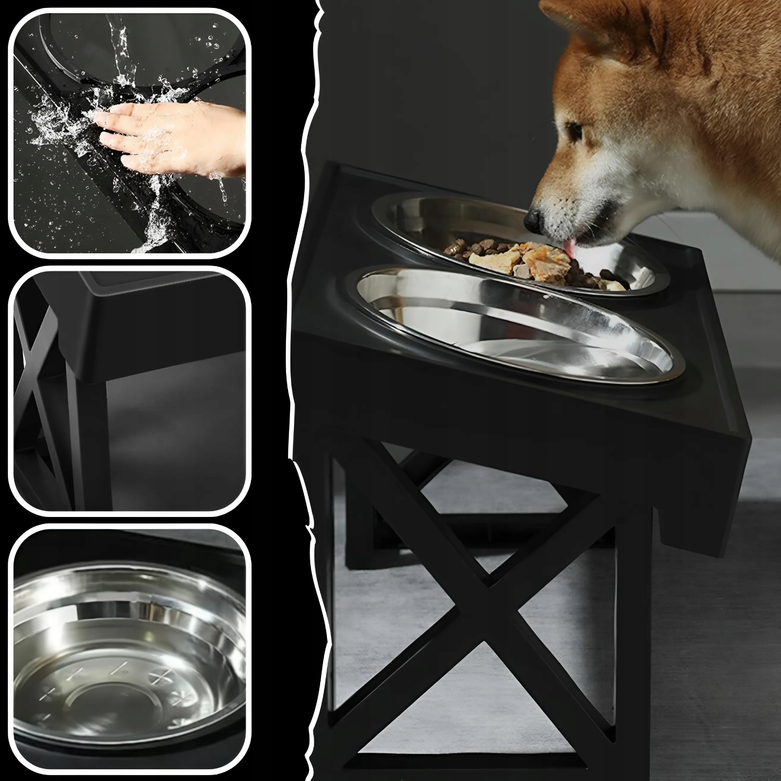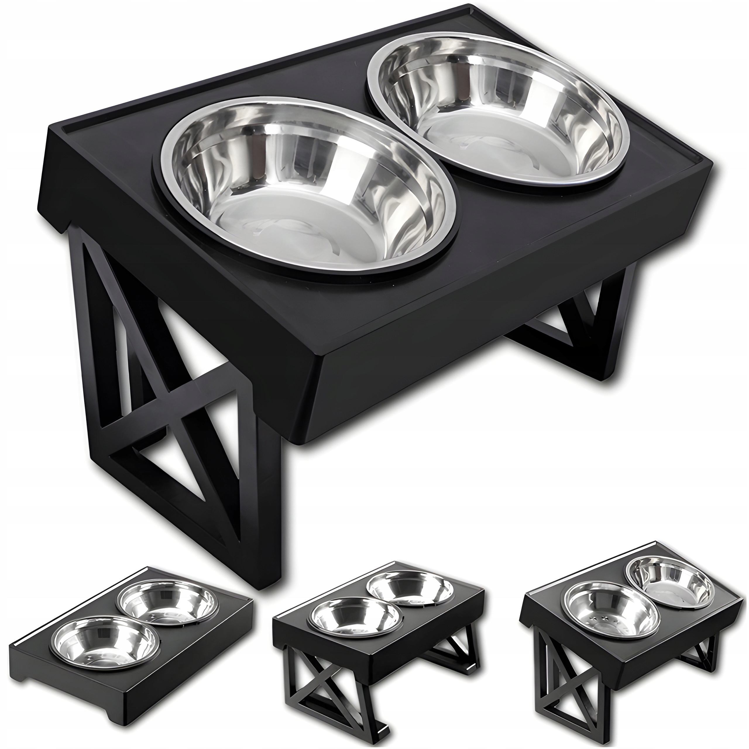ДВОЙНАЯ МИСКА ДЛЯ СОБАКИ НА ПОДСТАВКЕ, РЕГУЛИРУЕМАЯ ВЫСОТА, МЕТАЛЛИЧЕСКАЯ ПОДСТАВКА
