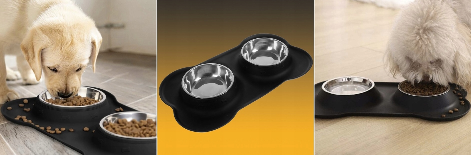 Это практичный набор, в который входит не одна собачья миска, а две, поэтому вы можете не только положить туда еду для питомца, но и налить ему пресную воду.