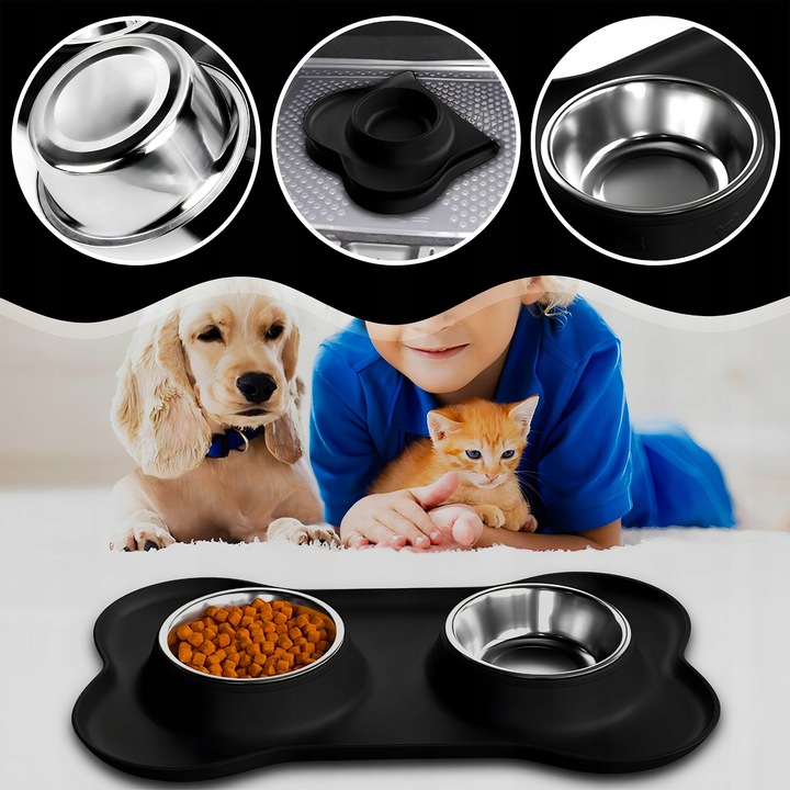 ДВОЙНАЯ МИСКА 400 МЛ ДЛЯ СОБАК И КОШЕК, НЕСКОЛЬЗЯЩАЯ, БОЛЬШАЯ С ПОДСТАВКОЙ ДЛЯ МИСКИ