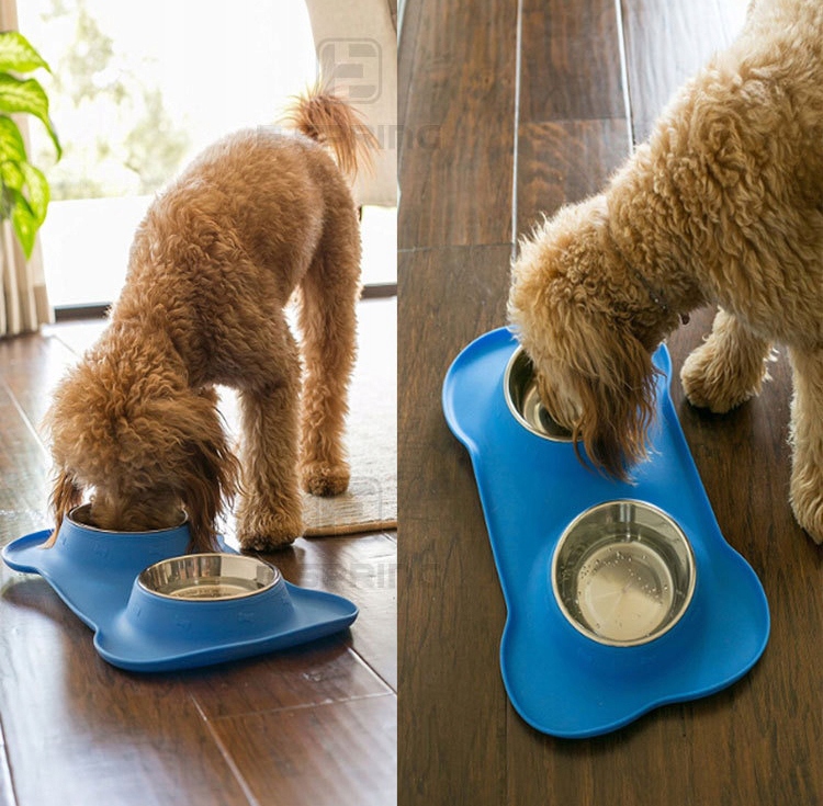 - Double - это практическая набор, в которой нет ни одной миски для собаки, но до двух, так что вы можете оба разместить там пищу для домашнего животного, а также залить пресную воду. материалы подставка изготовлена из сильной резины, в то время как миски изготовлены из нержавеющей стали