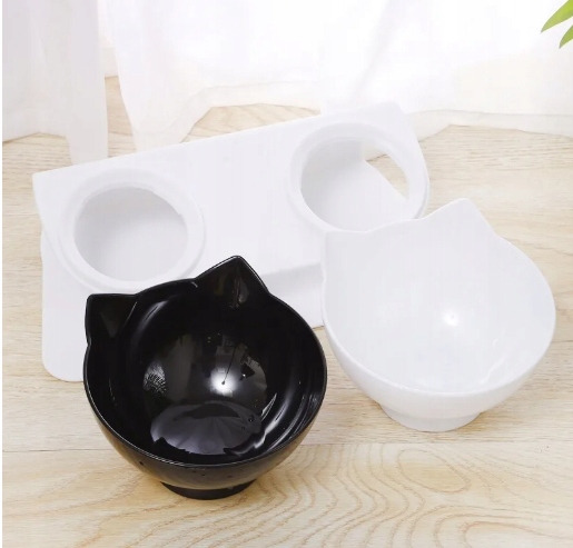 MISKA PODWÓJNA Z USZAMI DLA KOTA PSA Z PODSTAWKĄ ZESTAW MISEK 2444