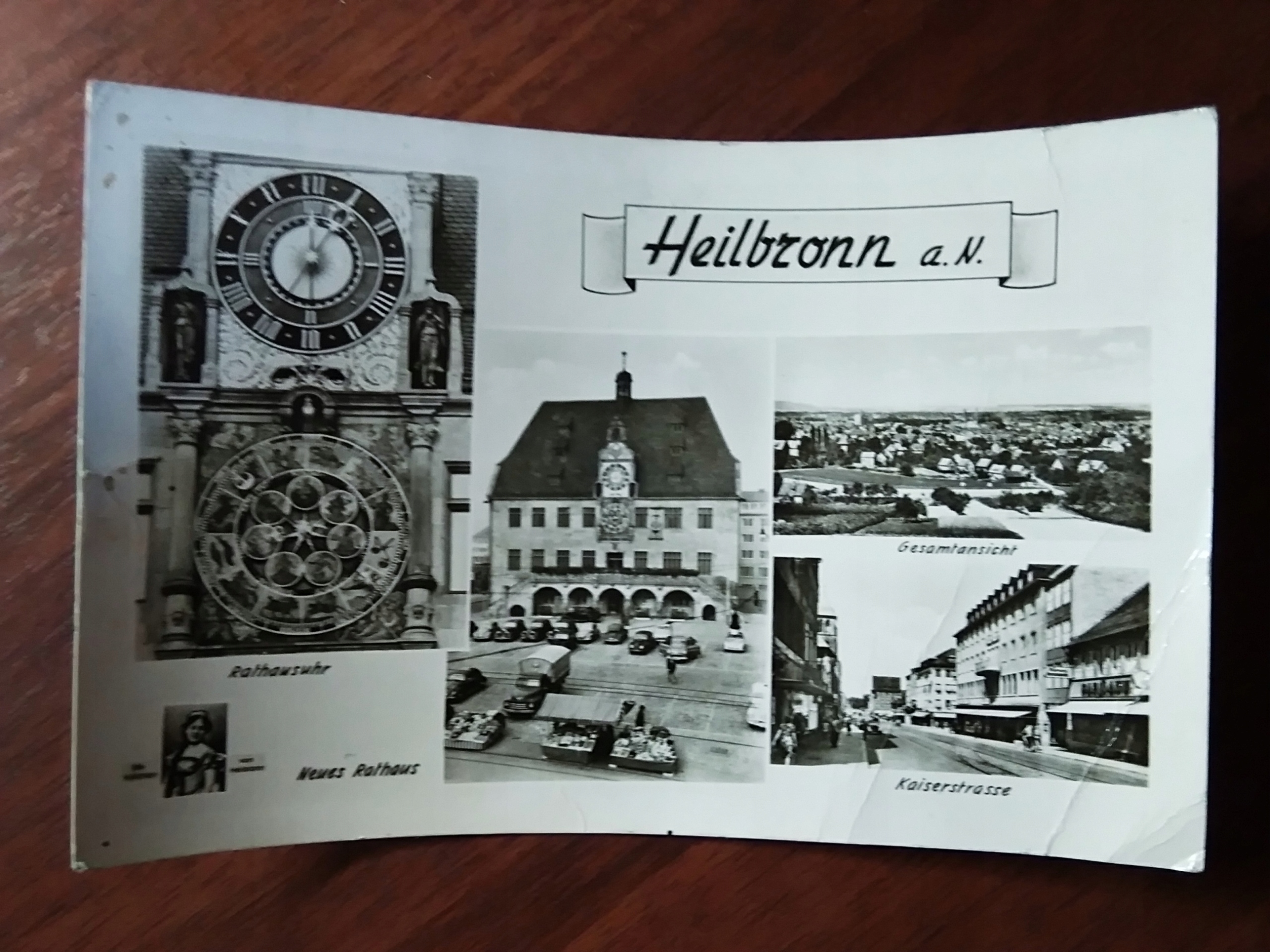 Міська ратуша Хайльбронна з видом на автомобільний годинник, 1959 Баден