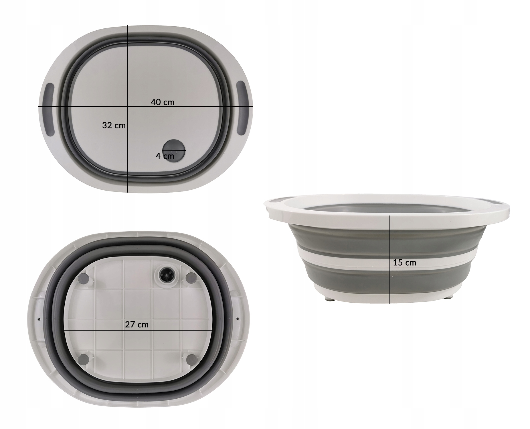 МИСКА СКЛАДНА З ЗЛИВНОЮ ПРОБКОЮ, СИЛІКОНОВА ДЛЯ МИЙКИ, ПОДОДОН З РУЧКАМИ