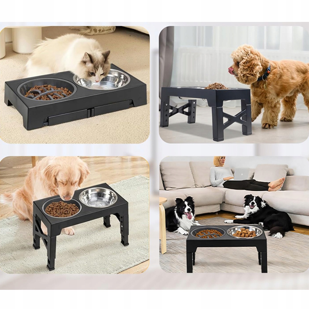 ✨ ДВОЙНАЯ МИСКА ДЛЯ СОБАКИ НА ПОДСТАВКЕ С 5-СТУПЕНЧАТОЙ РЕГУЛИРОВКОЙ ВЫСОТЫ, ЗАМЕДЛЕНИЕ ЕДЫ 2в1✨