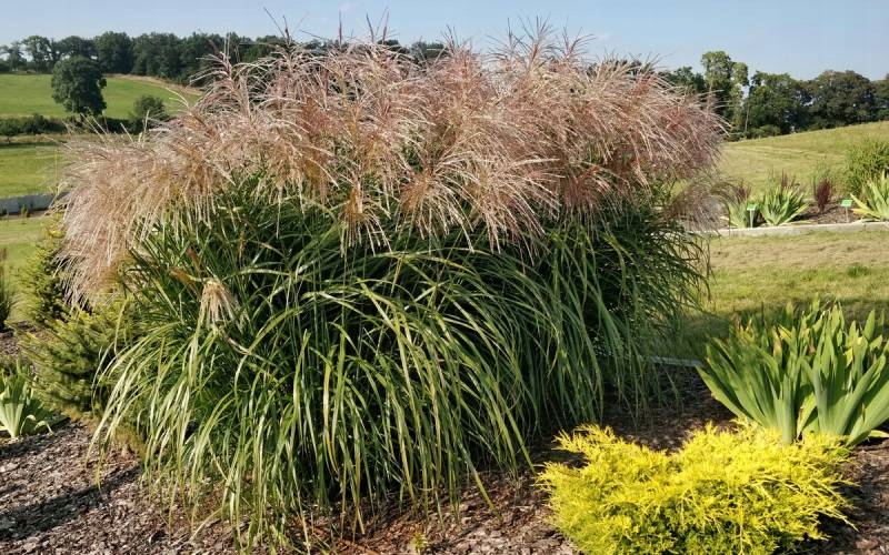 Мискантус - один из основных видов, используемыхдля создание гравийных грядокв японском или современном стиле или на берегу ручья, пруда или пруда.