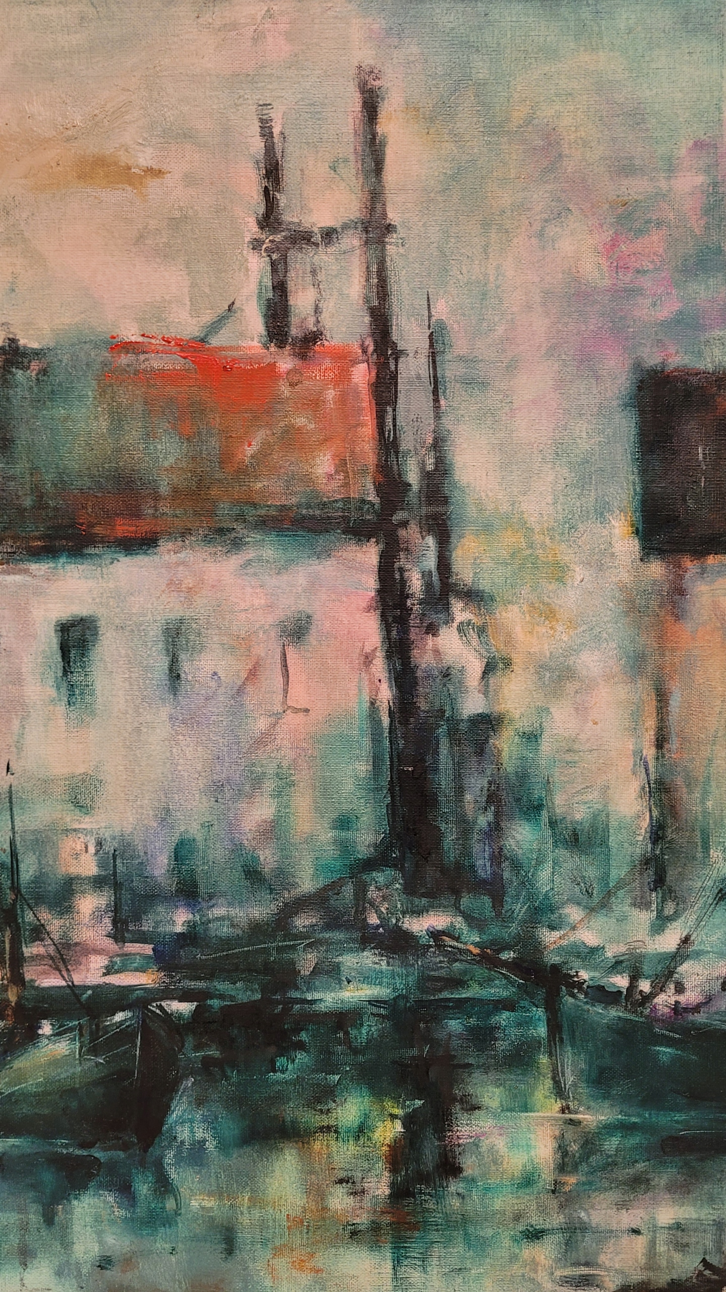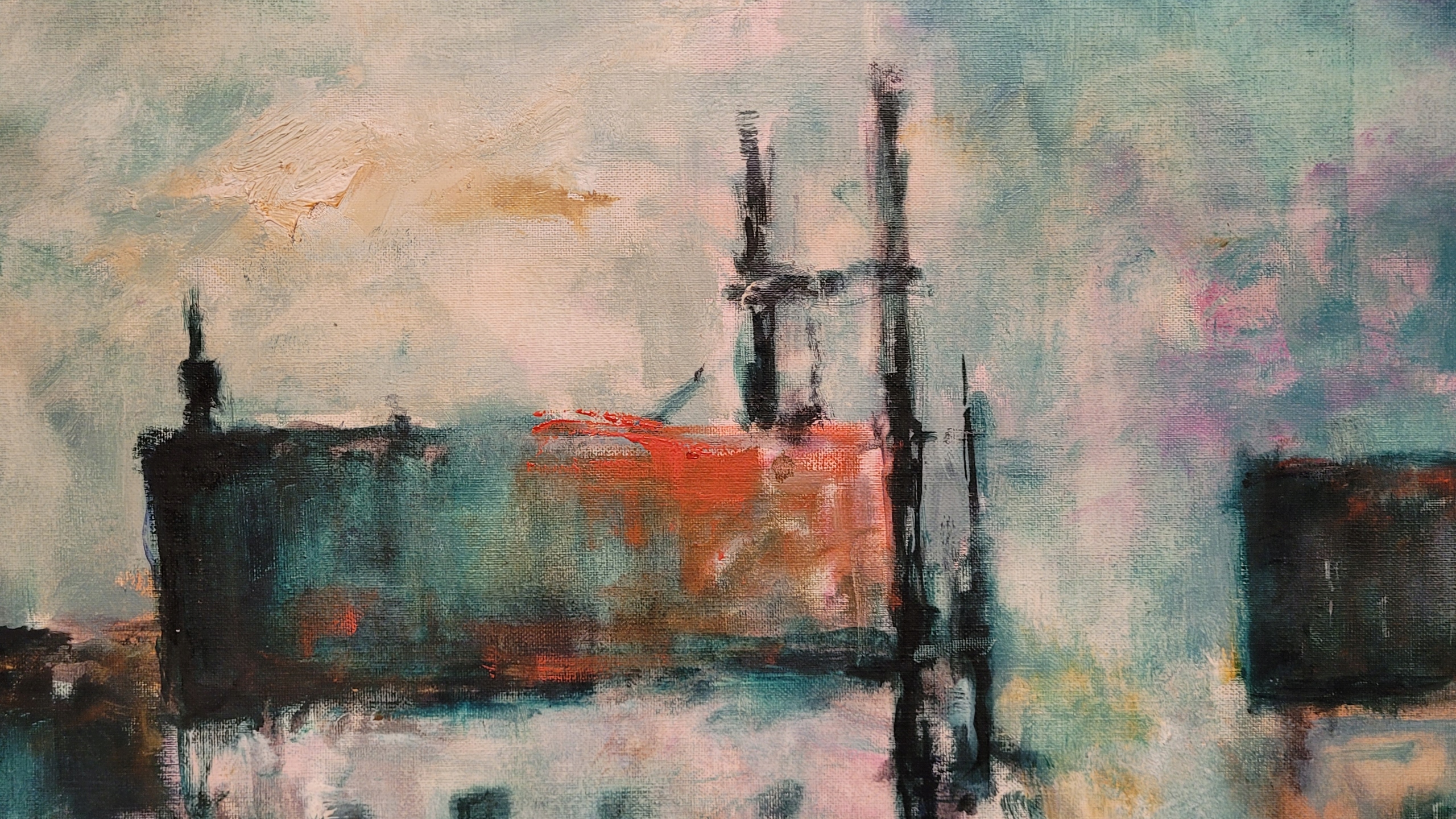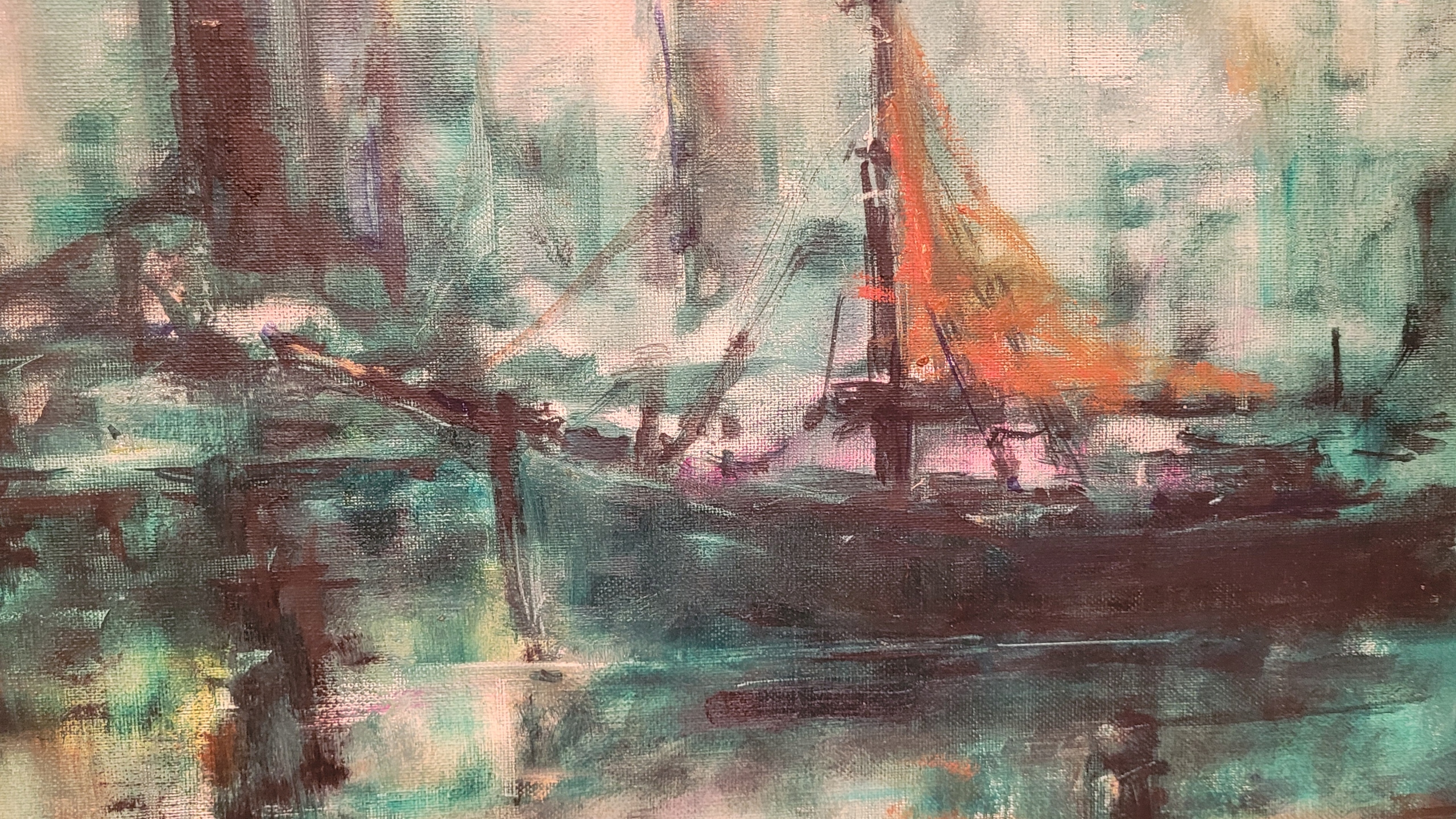 «Городской пейзаж с портом», красивая, подписанная нефтяная картина.