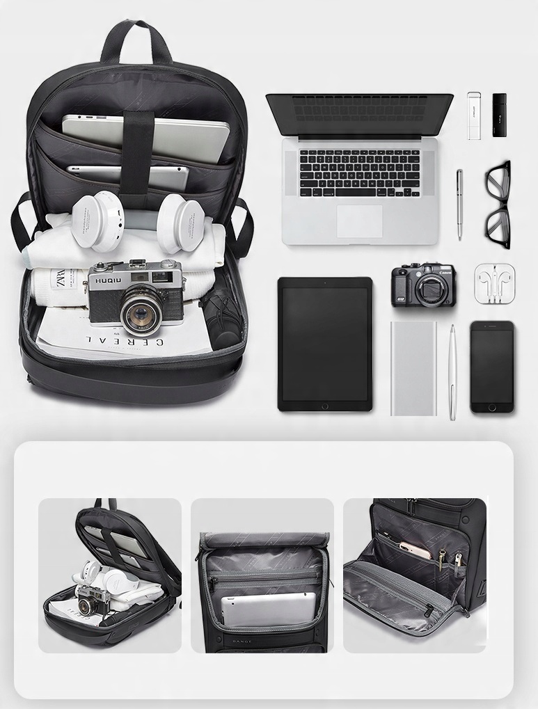 Надежно сделан с вниманием к каждой детали. Предназначен для выполнения всех функций универсального рюкзака и обеспечения безопасной транспортировки электронного оборудования. Он оснащен внешним портом USB и разъемом micro USB типа C, поэтому вам не придется вынимать блок питания из рюкзака, чтобы зарядить телефон/ноутбук и т. д. Изготовлен из прочного и водонепроницаемого материала.