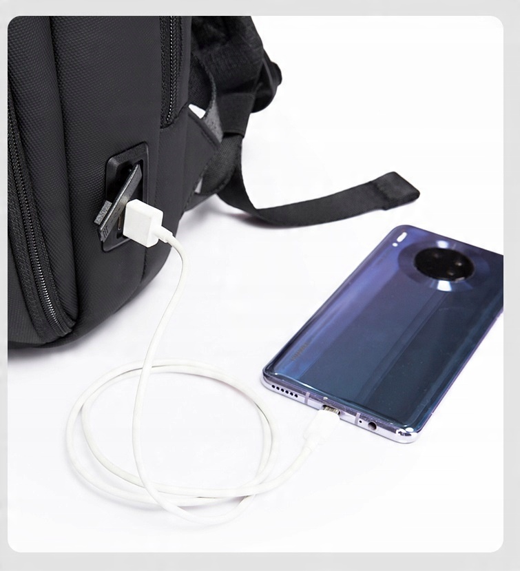 Рюкзак оснащен USB-разъемом, поэтому для зарядки телефона нет необходимости вынимать из рюкзака павербанк. Обратите внимание, что внешний аккумулятор в комплект не входит.