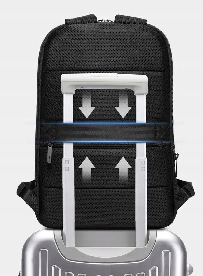 Рюкзак также оснащен ремнем, позволяющим надеть рюкзак на ручку чемодана.