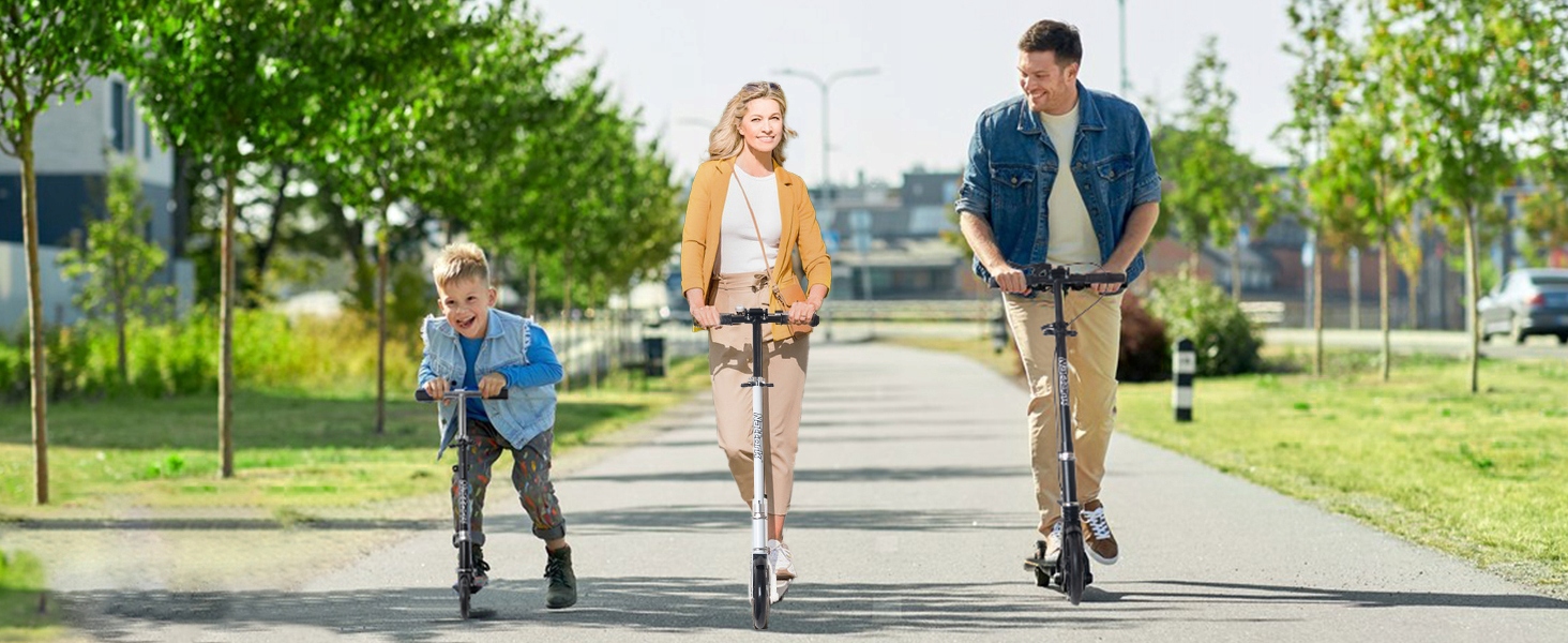 - 【Hass-Free Ride】Наш самокат оснащен большими полиуретановыми колесами с высоким отскоком 200 мм, подшипниками ABEC7 и механизмом амортизации для плавной и комфортной езды по твердым и неровным поверхностям, подходящим для всех типов тротуаров. Текстурированные нескользящие подножки позволяют новичкам легко удерживать ноги при скольжении с места на место, повышая уверенность при поездках.