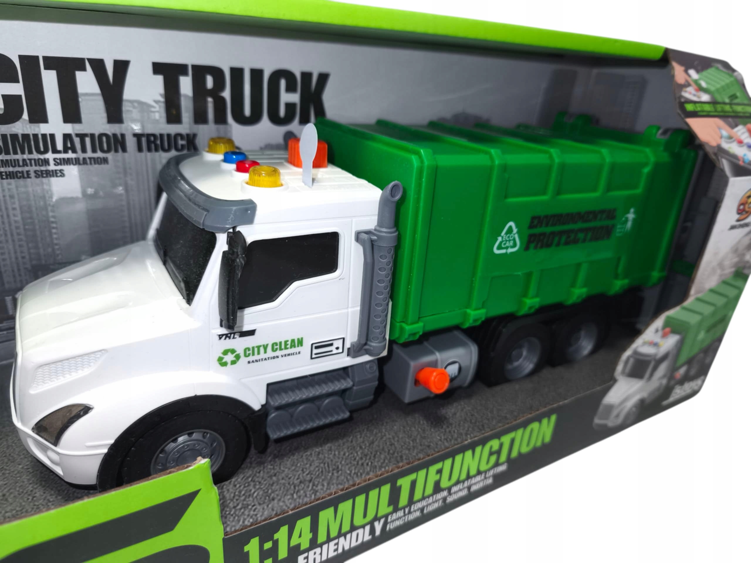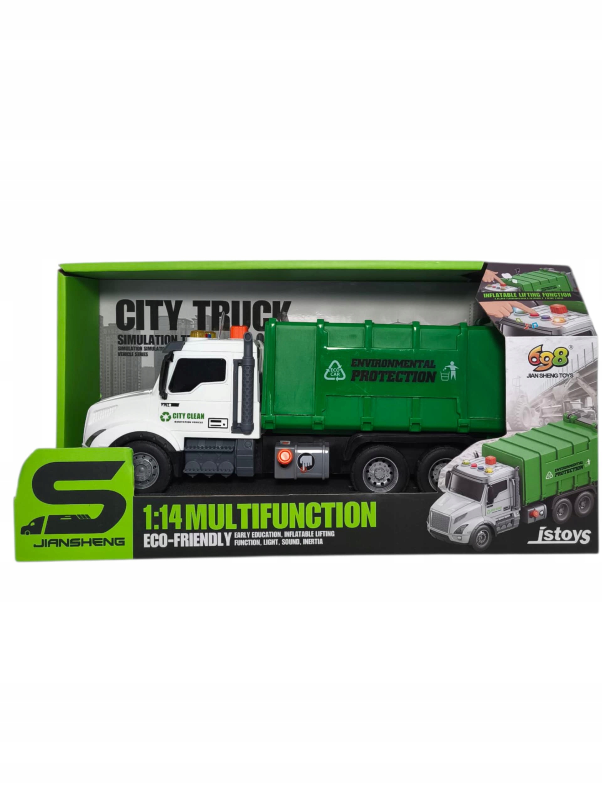 Реалистичный мусоровоз со звуком и светом, идеально подходящий для городских игр! Транспортное средство имеет передвижной контейнер, который можно поднимать – ребенок может «загружать мусор» и играть в настоящую работу мусоровоза. После нажатия кнопок на крыше активируются звуковые эффекты и светящиеся световые сигналы.