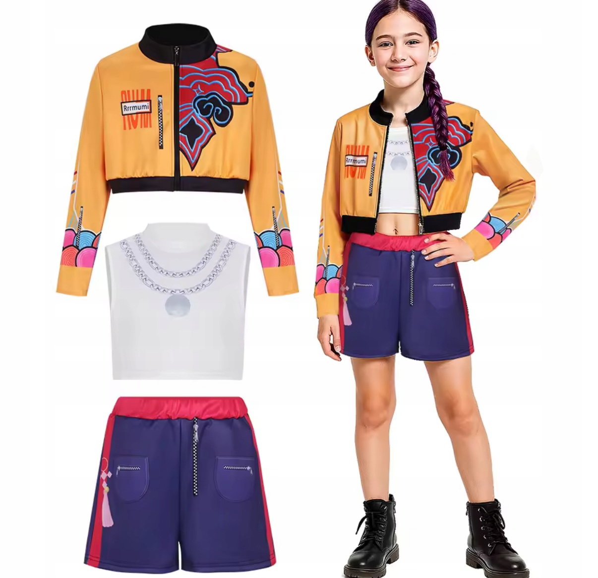 ✨ Чрезвычайно впечатляющий костюм, вдохновленный персонажем Руми из K-POP Demon Hunters - идеальный выбор для поклонников корейской культуры, косплея и модного K-POP стиля! Это сочетание энергии, смелости и неповторимого стиля, привлекающее внимание, где бы оно ни появлялось.