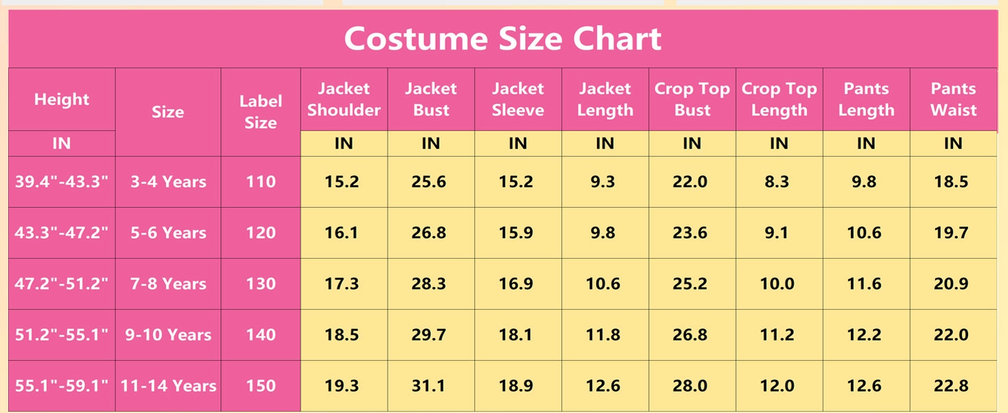 ✨Размер: Этот комплект костюмов поп-певицы подходит для девочек от 3 до 14 лет. Однако обратите внимание, что возраст — это лишь рекомендуемый возрастной диапазон. Подробную информацию можно найти в размерной таблице, содержащей данные о росте и обхвате груди.
