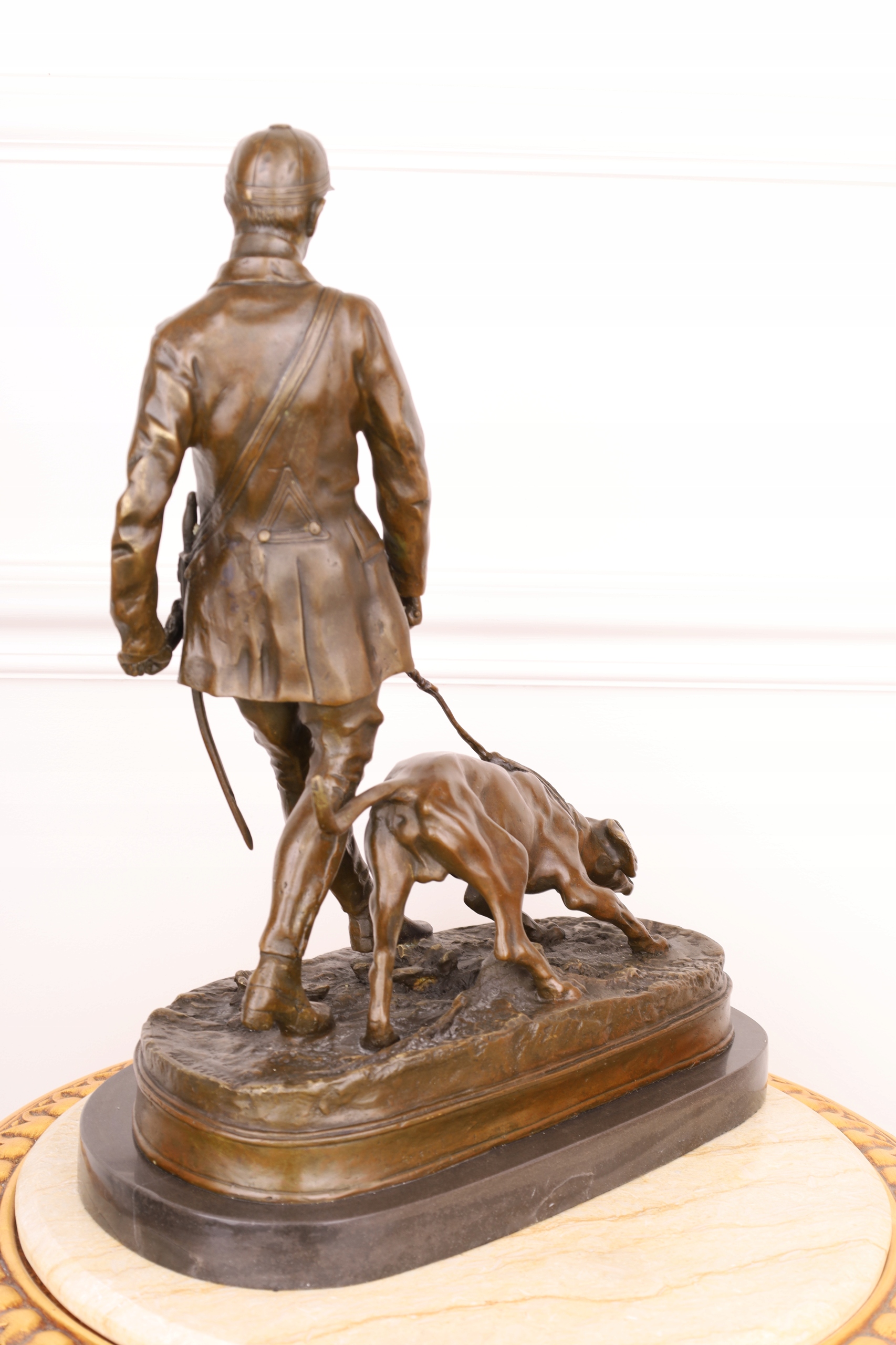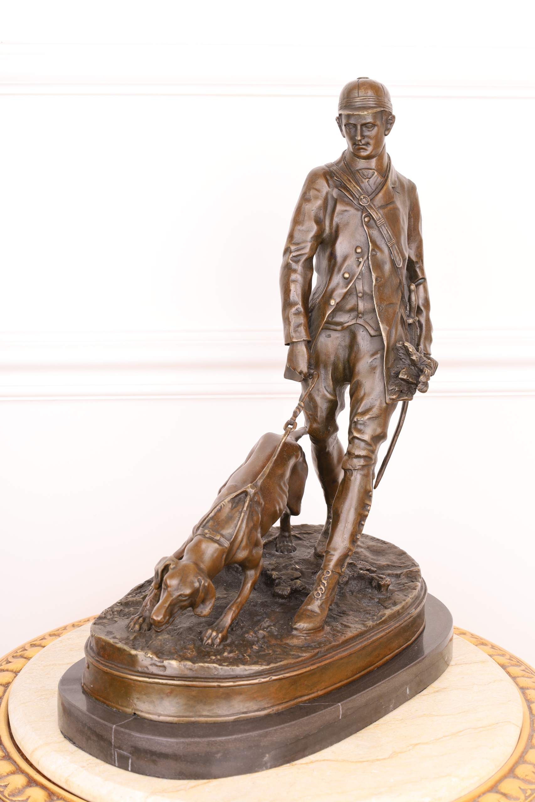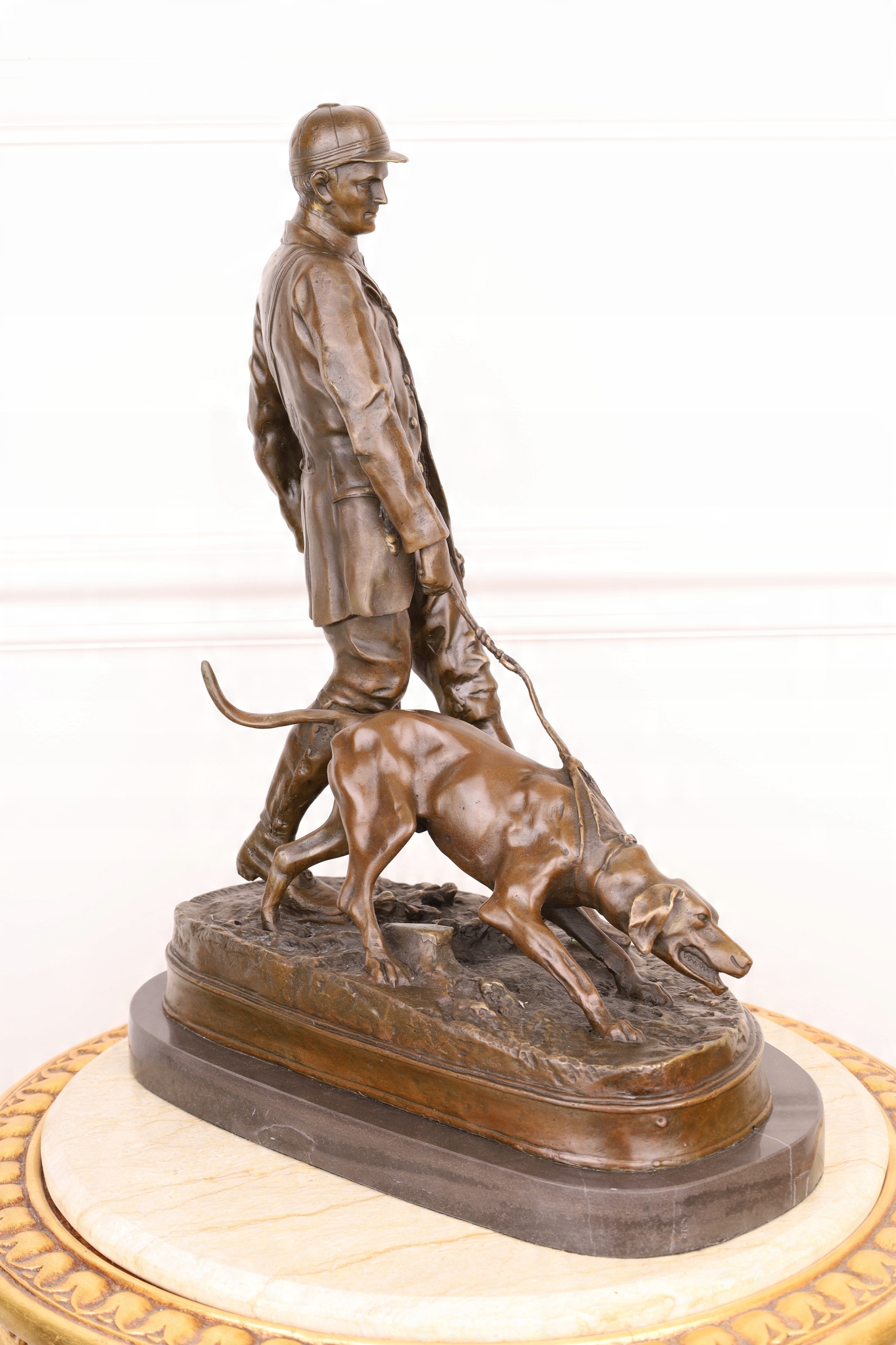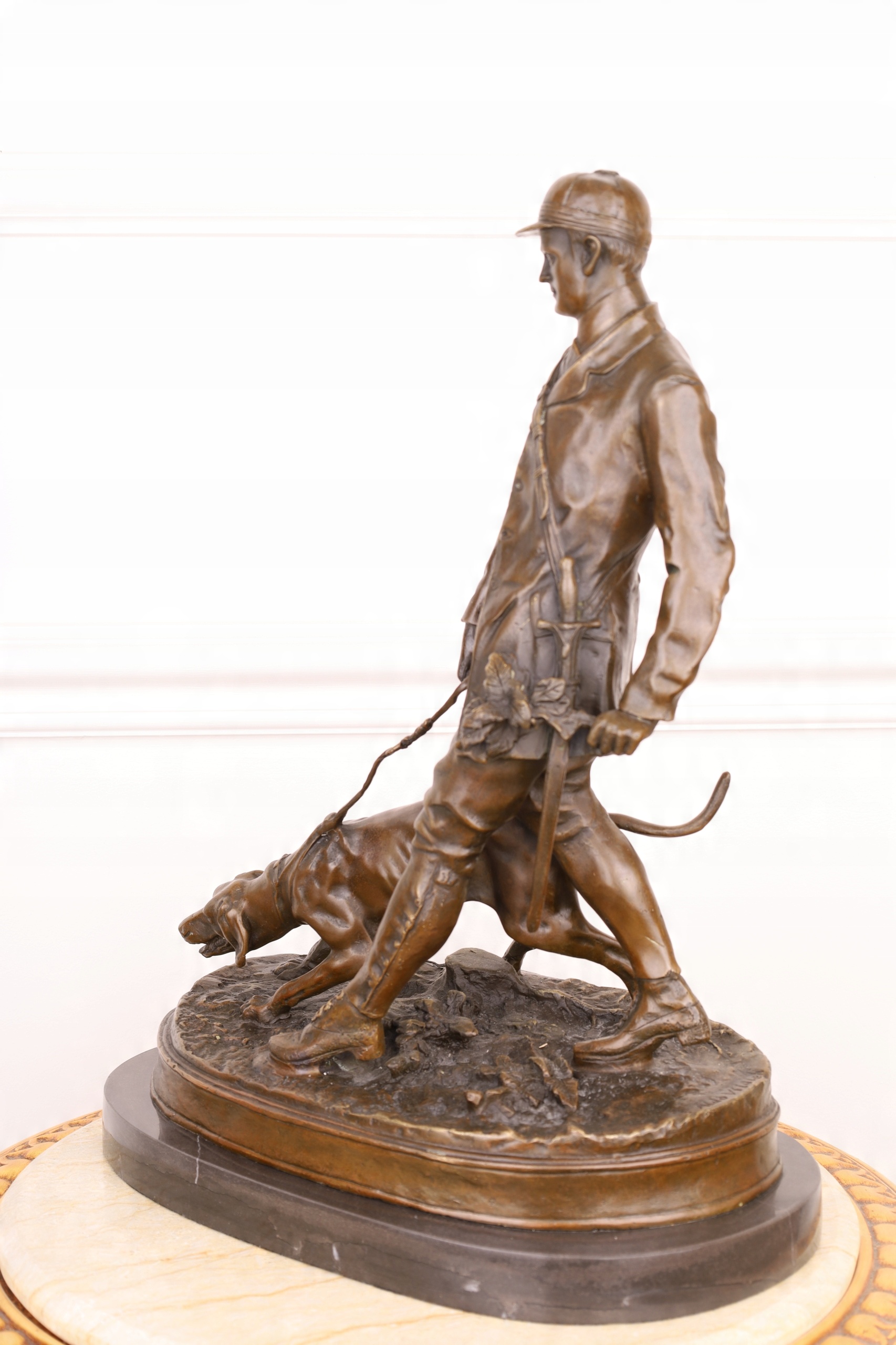 Мисливець із собакою велика бронзова фігура