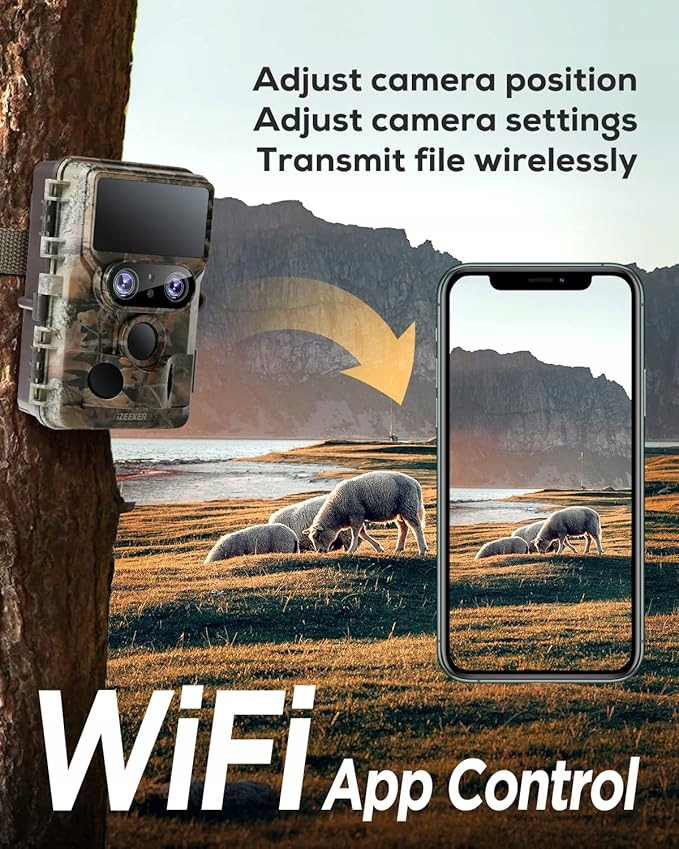подключение к Wi-Fi и легкая регулировка угла: легко подключить охотничье камеру к телефону с помощью Wi-Fi. Вы можете настроить настройки, посмотреть прямую трансляцию с камеры на экране телефона, чтобы соответствовать углу и положению, и загружать материалы непосредственно на телефон, не удаляя камеру и подключить ее к компьютеру. (Примечание: соединение Wi-Fi ограничено 10 м)