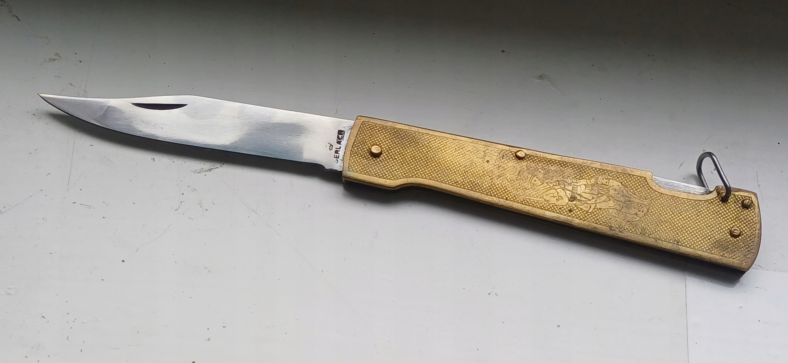 ОХОТНИЧИЙ - КАРМАННЫЙ НОЖ - ГЕРЛАХ = ЛАТУНЬ = УНИКАЛЬНЫЙ - НЕ ИСПОЛЬЗУЕТСЯ