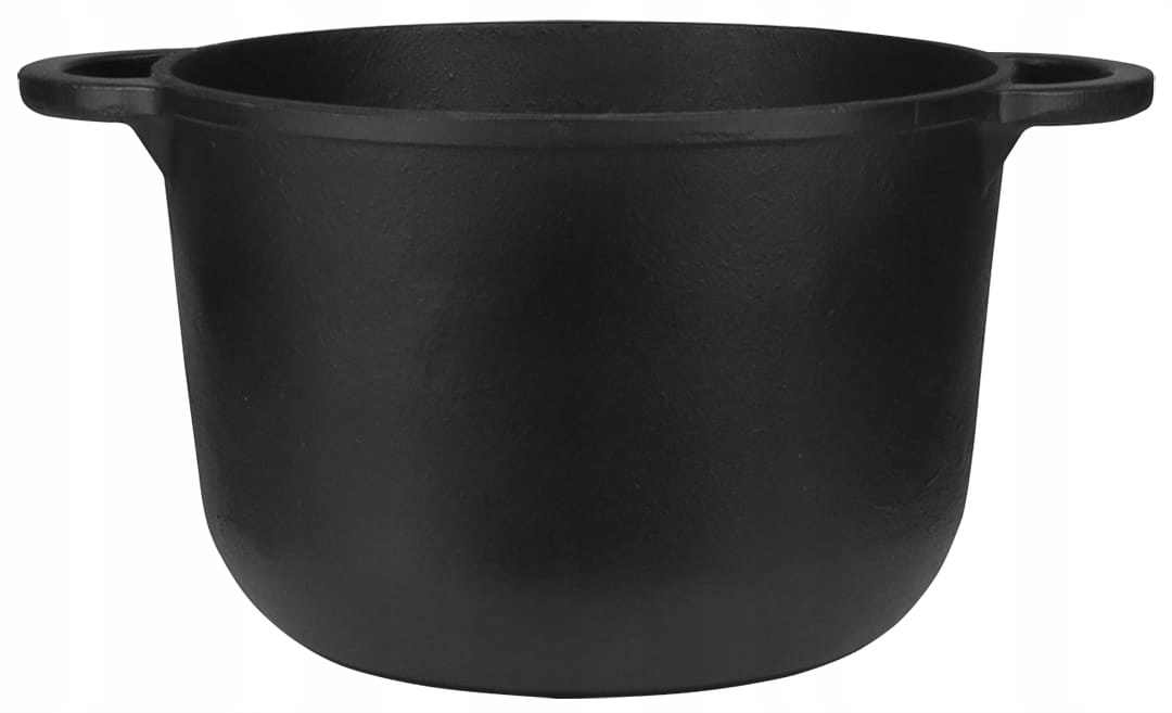 Казан заводской чернен, т.е. обжарен в жире, который обеспечивает пропитку чугунного покрытия и предотвращает пригорание продуктов.