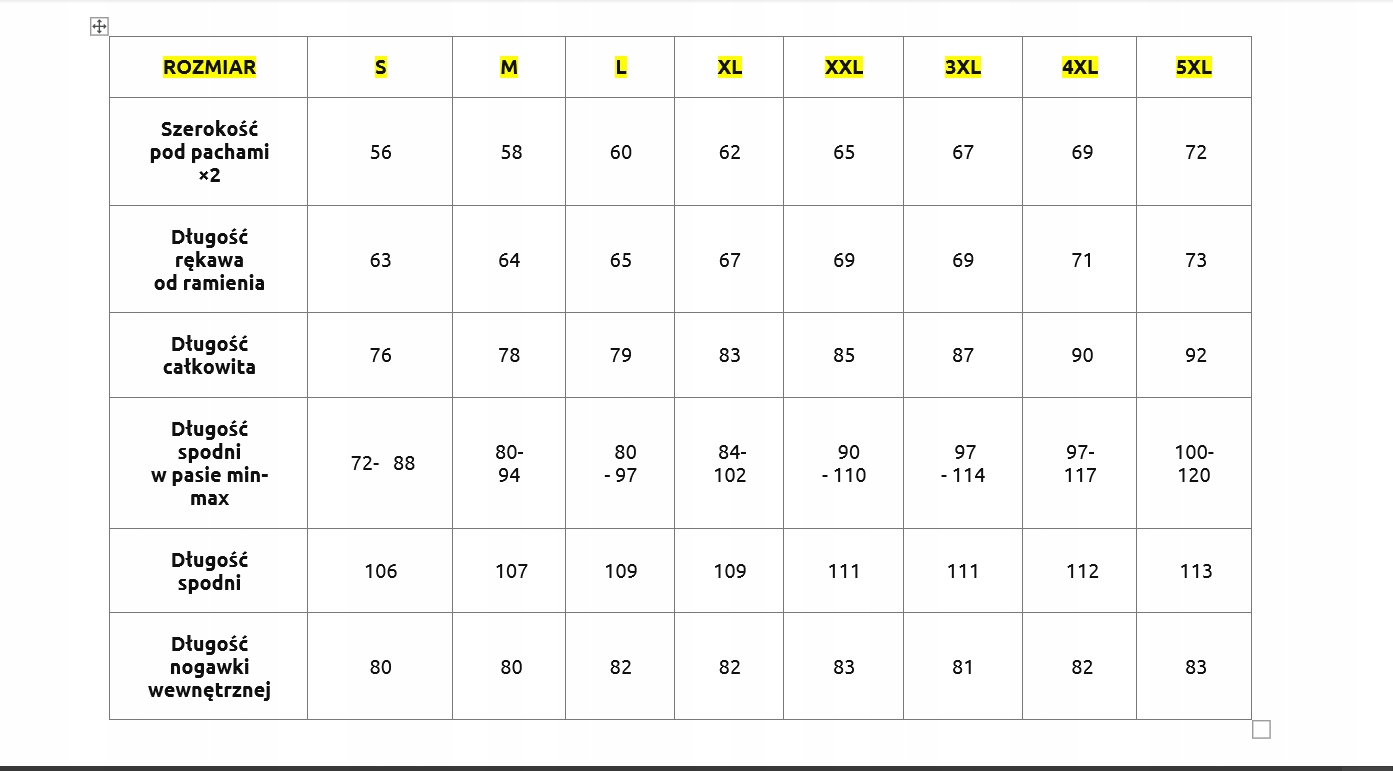 Таблица размеров - внешние размеры, измерены в горизонтальном положении -