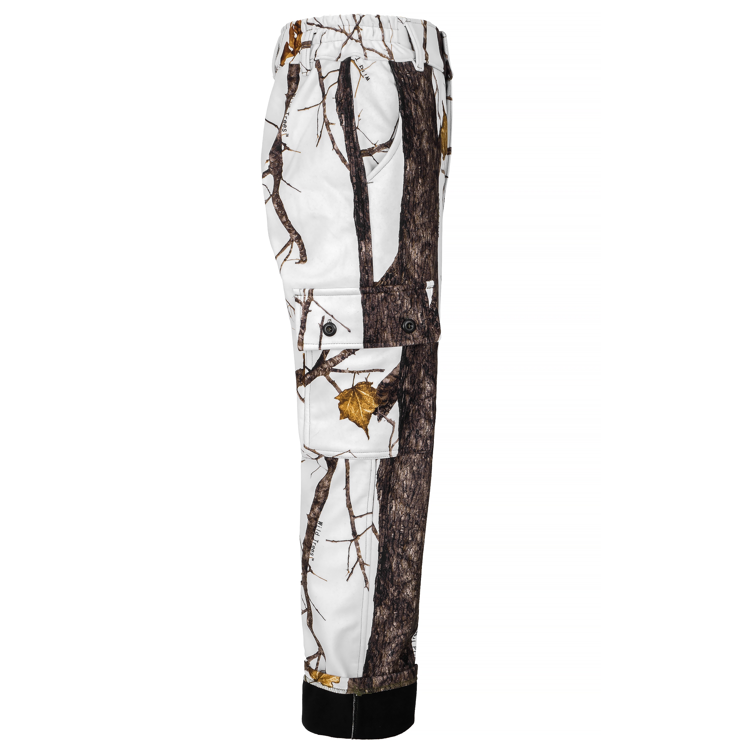 Мягкий комплект из софтшелла в настоящем белом лесном камуфляже.