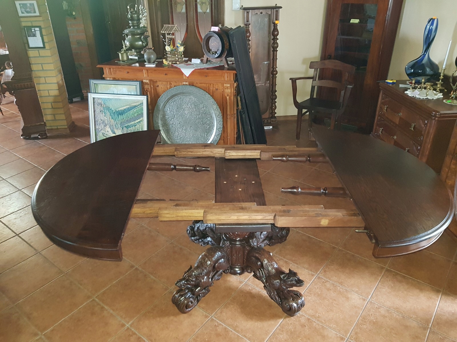 Раздвижной дубовый охотничий стол (после ремонта)