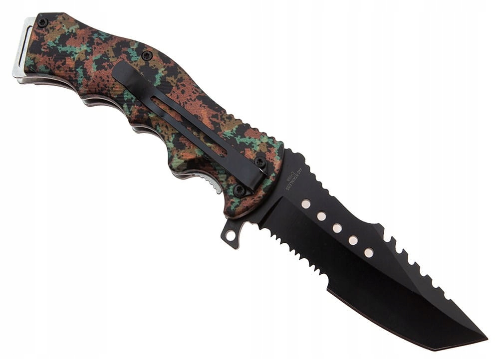 Нож охотничий пружинный имеет оптимальные размеры, позволяющие легко положить его в карман или рюкзак, а также дополнительно имеет металлическая клипса позволяет закрепить нож в удобном месте.