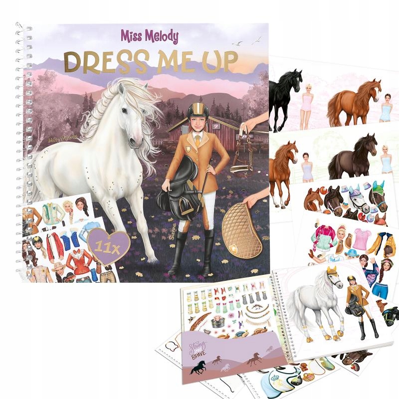 Суперкрасивые наряды для верховой езды и все, что душе угодно лошади: в стикере и раскраске Dress Me Up от Miss Melody вы сможете создать замечательные наряды для наездников и их копытных друзей с помощью 11 листов наклеек на 24 страницах