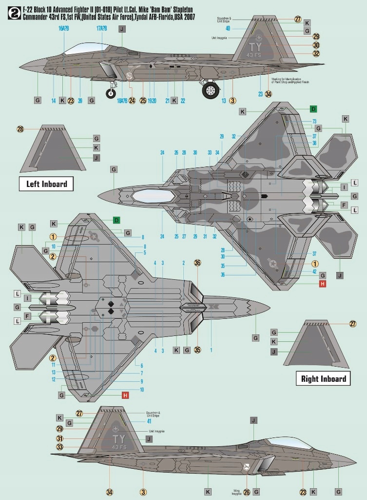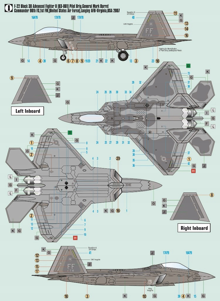F-22 Aviation США, эскадрилья 90 FS 1-й пилот Марк Баррет, база ВВС Вирджиния, США, 2007 г.