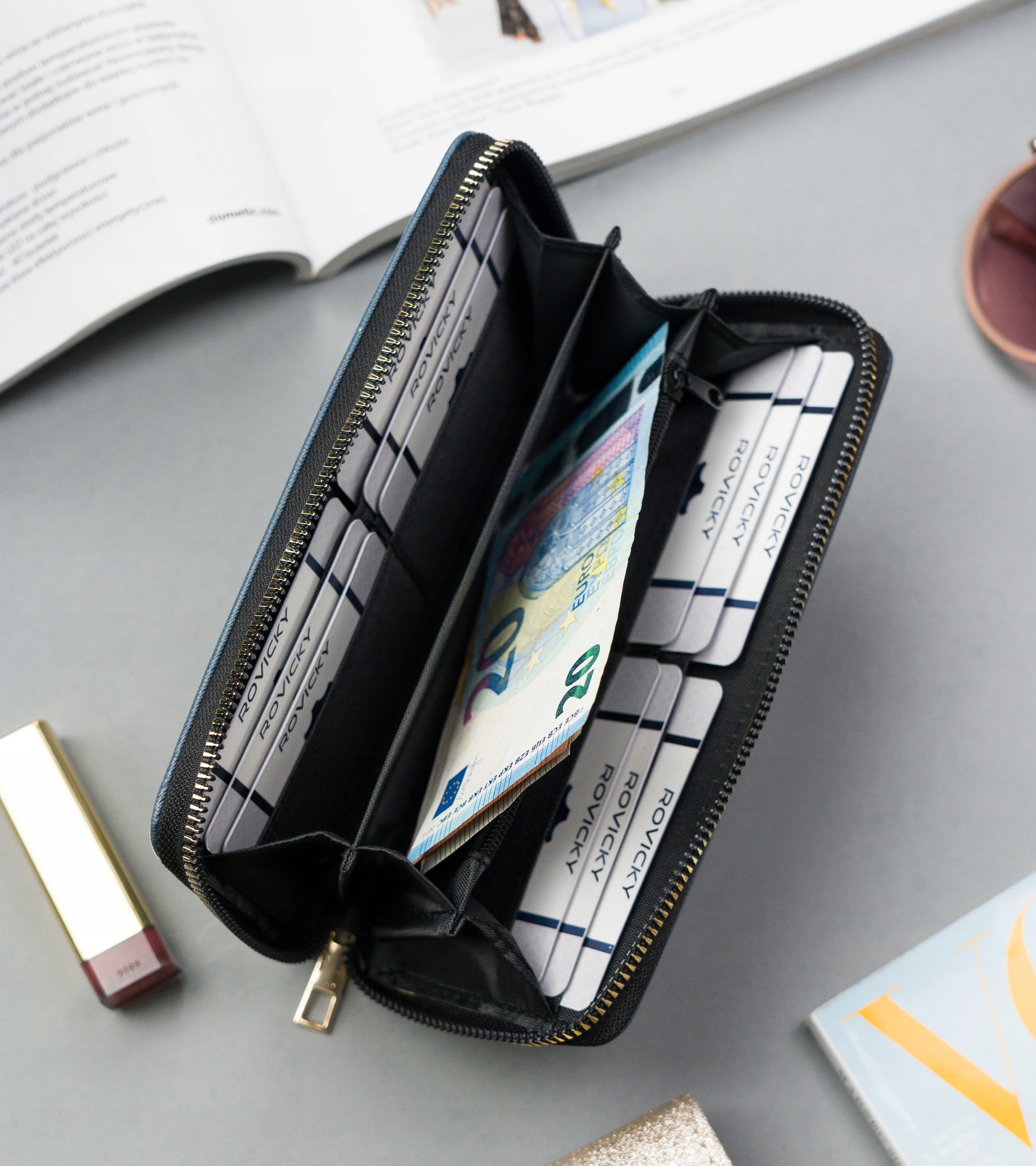 Кошелёк большой, но всё же очень удобный аксессуар. Его размеры позволяют разместить все необходимые в повседневной жизни вещи: от кредитных карт до водительских прав и других документов.