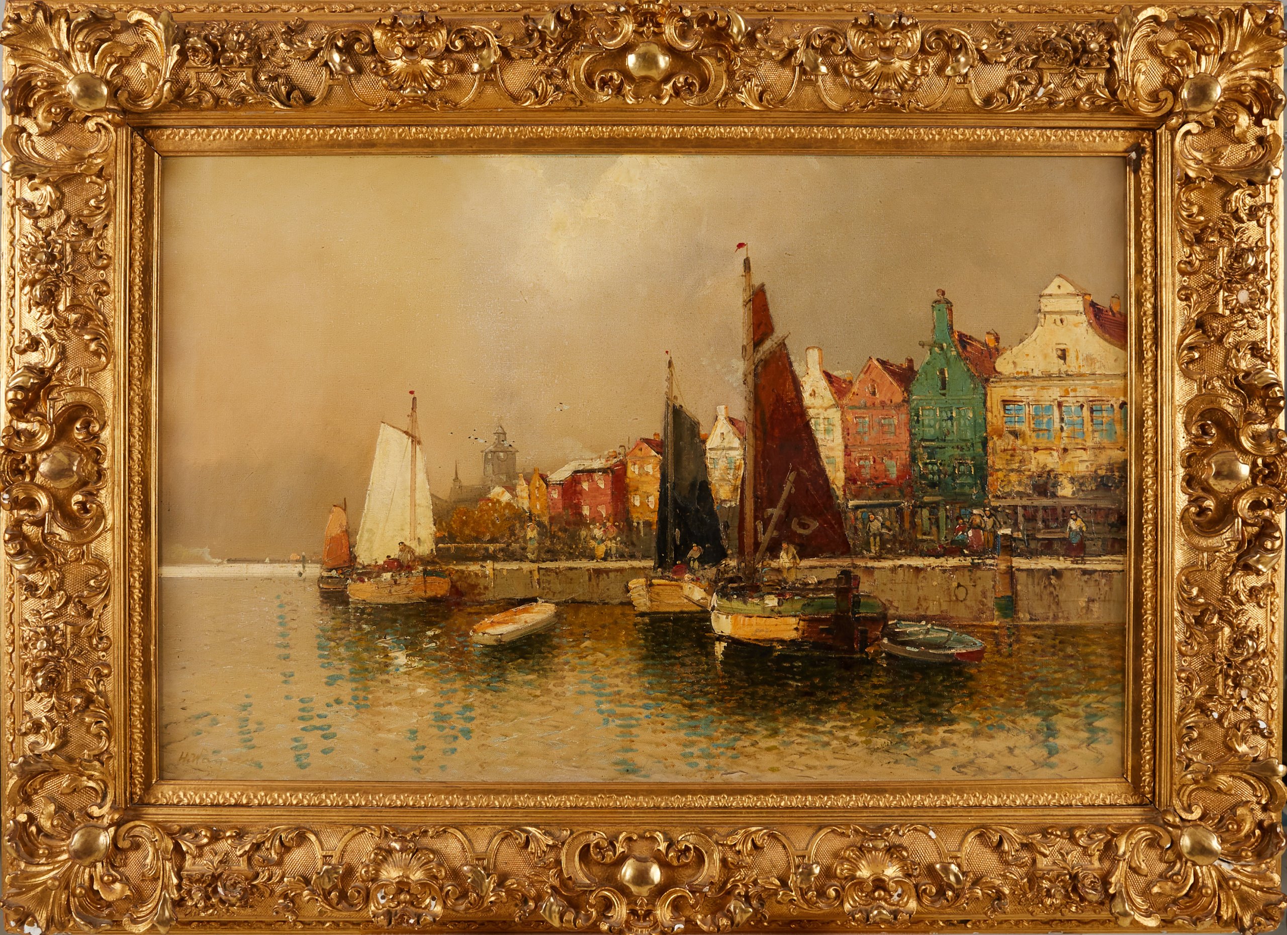 На картине изображен портовый город в Нидерландах