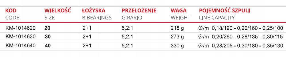 - емкость катушки: 0,20/260 - 0,28/135 - 0,30/115